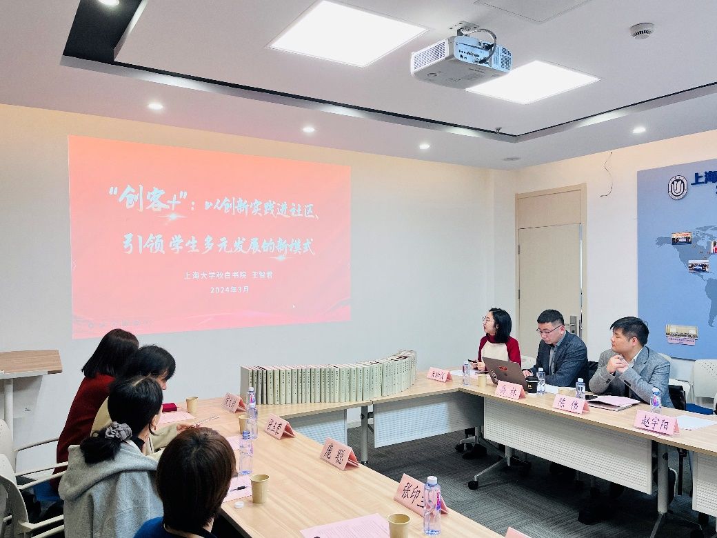 在本科生全程导师代表进书院精品项目中期汇报交流环节中,全程导师们围绕自身导师项目展开深入交流。对外联络处陈然以《溯源百年·传诵青春——老上大校友后人寻访系列活动》为题,回顾校史、展望未来,指出百年上大红色学府的历史需要上大人赓续传承,传播红色校史,需要把握历史脉络,搭建多方平台、创新宣传形式,这样百年校史才能更好地在新时代被铭记,散发新的活力。社会学院陈伟以《用脚步丈量魔都:人文体验与社会调查并举的育人实践》为题,展示他和学生一起通过“city walk”的新潮方式开展更“接地气”的社会实践的经验。党委宣传部韩晓霞以《促进导学和谐互动,构建育人共同体——红色文化育人模式进书院的探索实践》为题,深入分析了大一新生对于金沙集团1862cc成色红色根脉的了解现状。招就处侯文婷以《就业背景下生涯教育融入书院人才培养的实践探索》为题,分享了基于学生专业进行的职场探索经验,力在提升学生的专业感知度、价值认同度和职场适配度。法学院岳林以《法律与科幻文学读书会》为题,探讨办好书院读书会不仅需要前期充足的阅读准备与宣传,更重要的是适当运用激励机制鼓励积极参与者,同时也要根据读后总结和成员反馈情况,适时调整阅读策略和计划安排。社会学院赵宇阳以《润心育心、向阳而生》为题,分享了自己以“改变偏见、提升个人心理健康状况、增强个人抗压能力和解决问题的能力”为核心开展的多样化活动。新闻传播学院朱珈仪以《创客+:打造社区创新实践育人新空间》为题,分享了提升学生科创能力的实践育人经验。