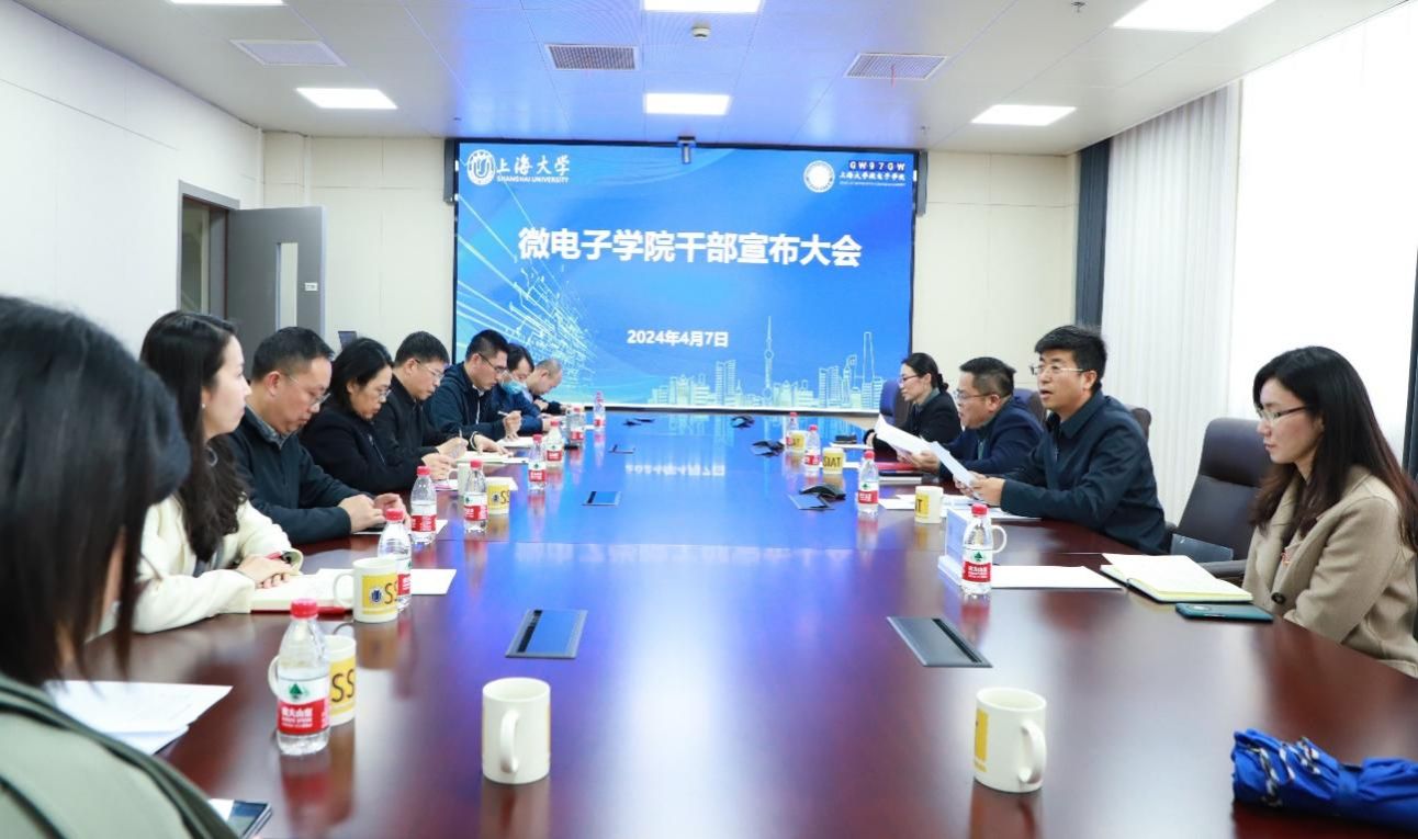 4月7日,微电子学院干部宣布会在微电子学院A楼313举行,金沙集团1862cc成色党委常委、副校长王从春,组织人事部组织处副处长、机构编制委员会办公室副主任张云中,学院党委书记郭纯生、院长赵建龙、执行院长张建华等领导班子成员,以及学科带头人、教工支部书记和教师代表参会。会议由张云中同志主持。