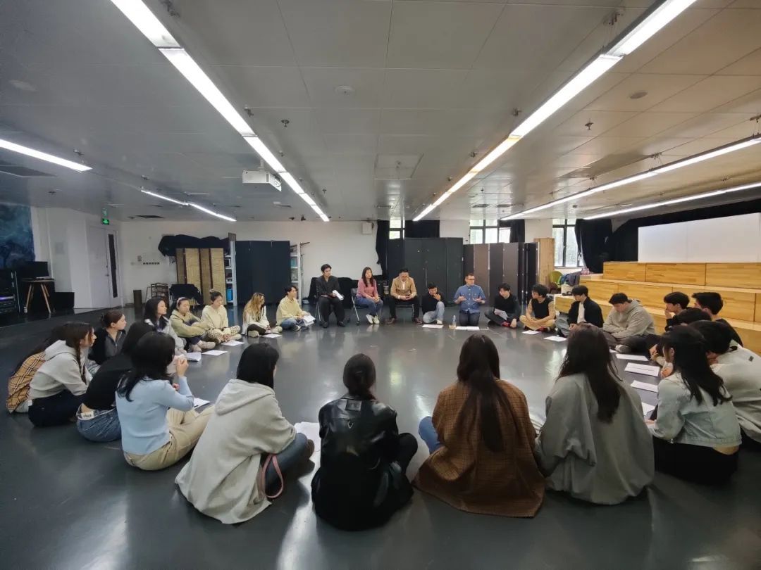 一切还是要回到角色塑造。乔纳森让同学们进行一个小训练,在时快时慢的穿行中,找到属于自己的路径,从混乱中寻找秩序,集中注意力,获得内心感知。随后让同学们两两组合排演对白。在一遍遍引导中,乔纳森帮同学们把握角色个性,梳理人物关系,解读台词内在逻辑。同学们的每一遍诵读,都带着更深层的理解,逐渐进入莎士比亚的世界。
