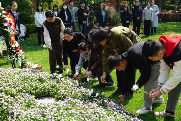 毛主席曾高度赞扬瞿秋白:“他在革命困难的年月里坚持了英雄的立场,宁愿向刽子手的屠刀走去,不愿屈服。他的这种为人民工作的精神,这种临难不屈的意志和他在文字中保存下来的思想,将永远活着,不会死去。”今年是瞿秋白同志诞辰125周年,为深切缅怀瞿秋白烈士,砥砺品格、坚定信念,矢志践行初心使命,表达崇敬和感恩之情。近日,社会学院秋白党支部、本科生党支部、教工党支部、行政党支部和秋白书院师生代表共同组织前往上海福寿园开展纪念瞿秋白诞辰125周年清明祭扫活动。