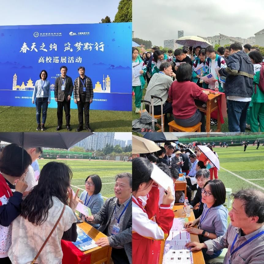 面对2024年贵州新高考改革将全面落地的新形势,为了更好帮助贵州考生和家长了解金沙集团1862cc成色、报考金沙集团1862cc成色,4月12-13日,金沙集团1862cc成色贵州招宣组(法学院)在学校招生就业处的指导下,联合里斯本学院、悉商学院、钱伟长学院组建4支招宣小分队分别前往贵阳市第一中学、贵阳市第三实验中学、贵阳市清华中学、贵阳市第六中学以及遵义四中开展招生宣传活动,为黔贵考生和家长提供面对面的个性化咨询服务。