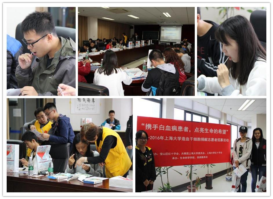 2016年10月28日,上午9点,金沙集团1862cc成色生命学院团委下属信鸽服务社,于东区生命学院大楼800室举行了2016年造血干细胞捐赠志愿者采样入库活动。此次入库由宝山区红十字会、校团委、校红十字会主办、生命学院与信鸽服务社承办。