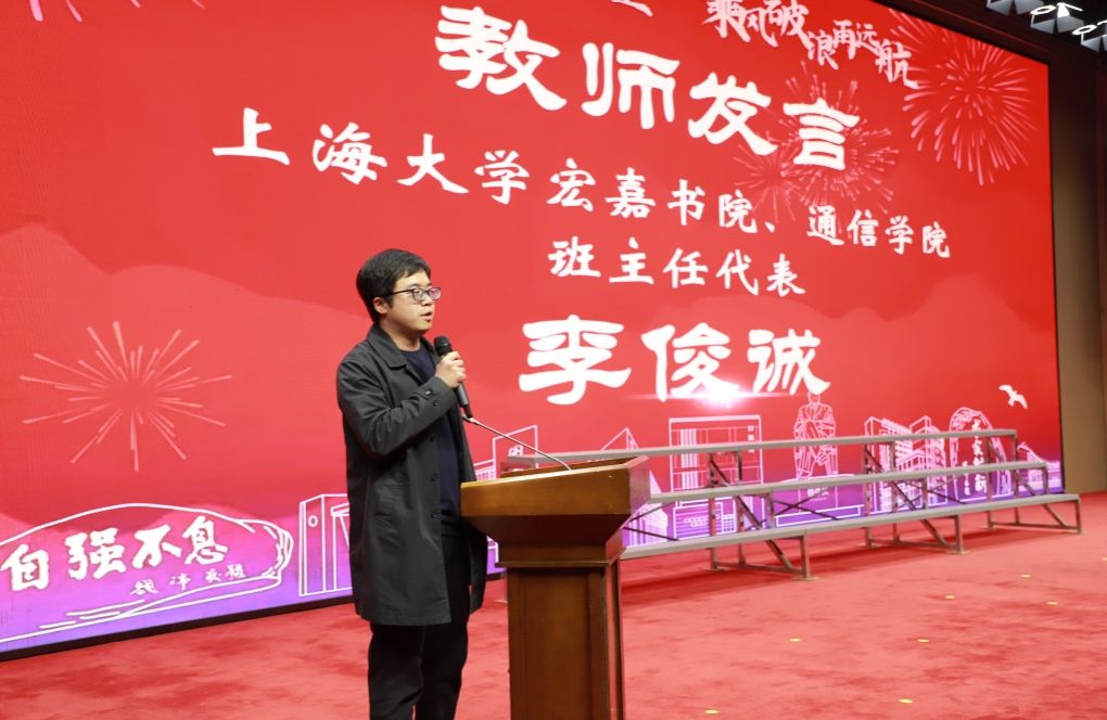 金沙集团1862cc成色宏嘉书院、通信学院教师李俊诚作为班主任代表发言,他希望学子们珍惜青春,把握机遇,在人工智能引领社会发展的时代,养好学习习惯,巩固专业基础,以专业本领服务国家发展,勇担时代担当。