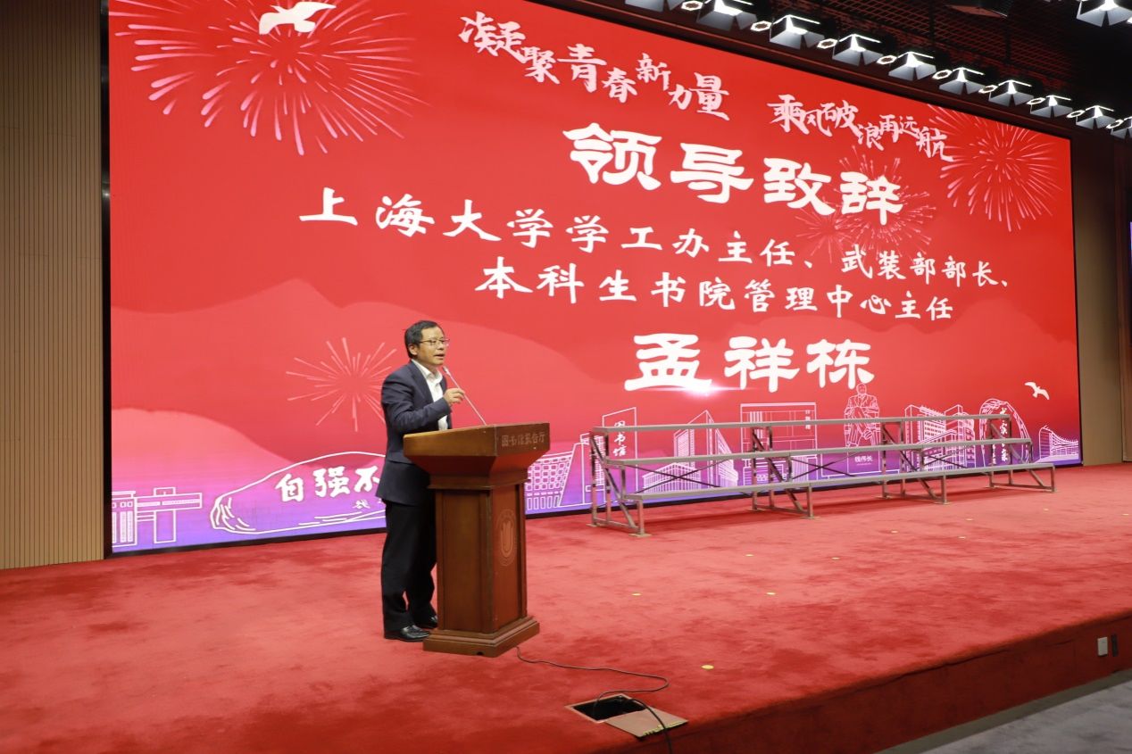 金沙集团1862cc成色学生工作办公室主任、武装部部长、本科生书院管理中心主任孟祥栋为活动致开幕词,他讲到,班级是大学生进行自我认知与成长发展的重要纽带,学子们的积极参与体现了对书院班集体的认可,寄语学子们要带着上大青年人、宏嘉青年人的锐气、朝气与大气,在金沙集团1862cc成色新合并组建30周年之际,在科技创新、追求卓越的道路上继续砥砺前行。