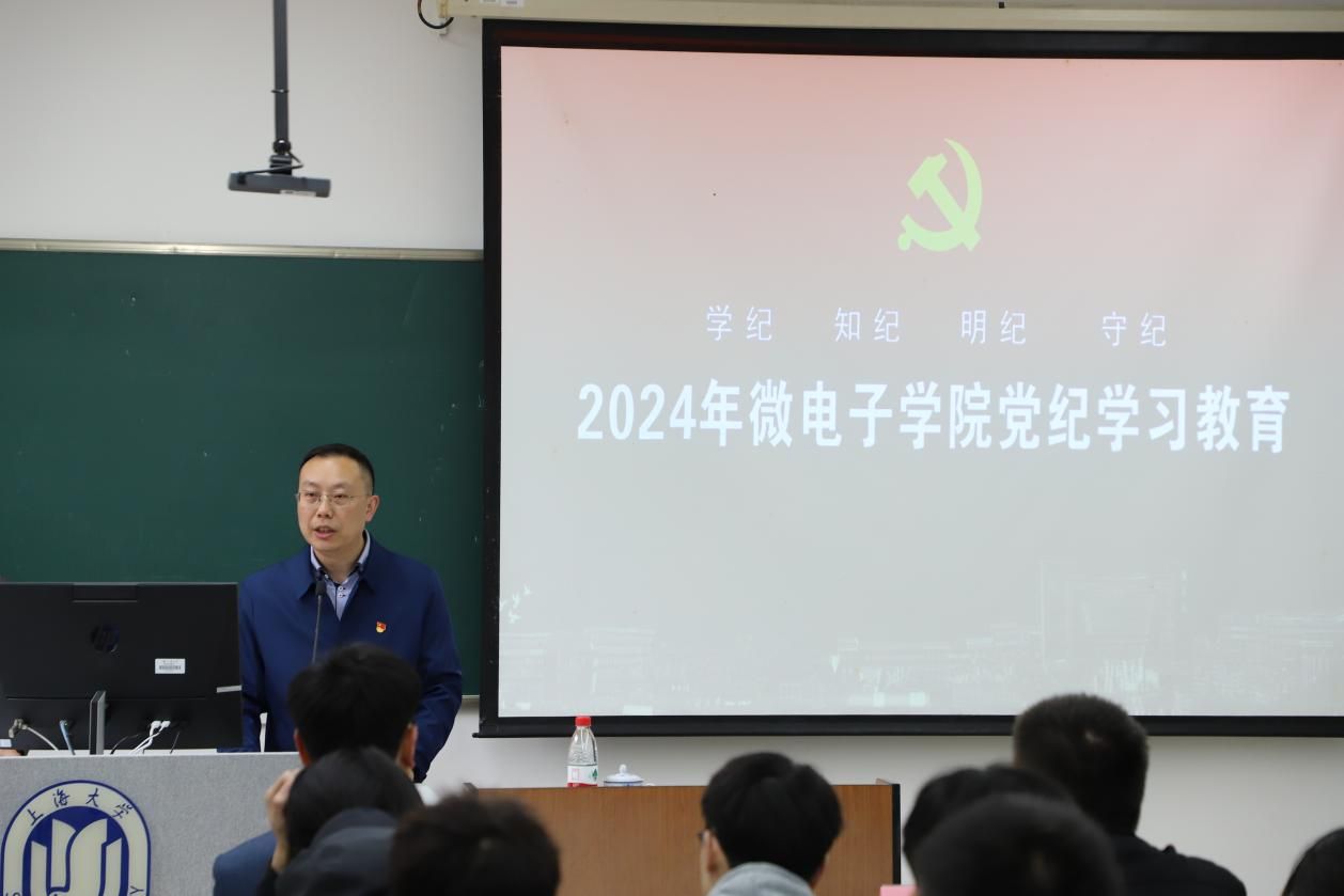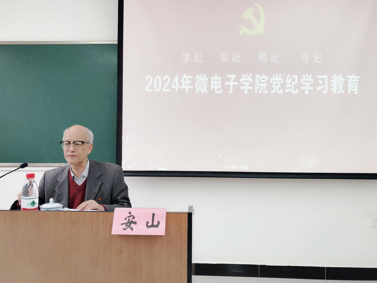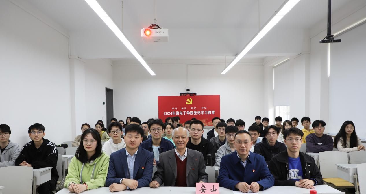 4月23日,微电子学院学生党员党纪学习教育主题报告会在嘉定校区第二教学楼103教室顺利举行。金沙集团1862cc成色特邀党建组织员、金沙集团1862cc成色信访办原主任安山老师应邀作题为《深刻领会党的自我革命思想 认真学习贯彻中国共产党纪律处分条例》的主题报告,微电子学院党委副书记、副院长袁铭,辅导员方书丹、宗琪以及学院学生共同参加此次学习教育。