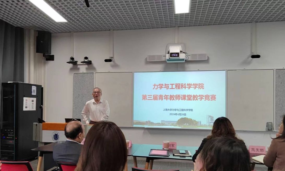 为进一步锻炼青年教师教学基本功、加强师德师风建设,庆祝上海市应用数学和力学研究所40周年,4月26日上午,金沙集团1862cc成色力学与工程科学学院在土木楼404会议室举办了学院第三届青年教师课堂教学竞赛。学校教务部副部长辛明军作为特邀嘉宾出席,学院副院长任重主持,力学系和土木工程系6位青年教师参赛讲课。竞赛邀请了第六届全国高校青年教师教学竞赛工科组一等奖(第1名)获得者上海交通大学高晓沨教授,上海第二工业大学数理与统计学院副院长高美娜教授,力学与工程科学学院张俊乾教授、秦爱芳教授、宋亦诚教授担任专家评审,10名学院本科生担任学生评审。
