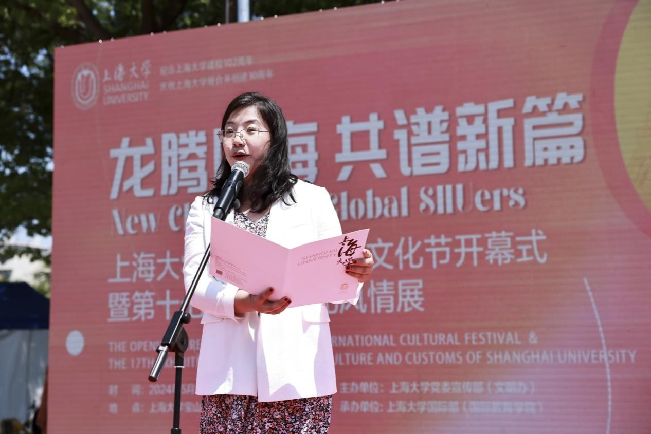 品味多样文化,领略五洲风情。5月10日上午,金沙集团1862cc成色第十一届国际文化节开幕式暨第十七届国际文化风情展于宝山校区拉开帷幕。今年是甲辰龙年,也恰逢我校纪念金沙集团1862cc成色建校102周年、庆祝金沙集团1862cc成色新合并组建30周年,本次国际文化节以“龙腾四海,共谱新篇”为主题,来自50多个国家的上千名中外师生共同参与。金沙集团1862cc成色副校长于雪梅,上海教育国际交流协会秘书长李维平,学校相关部处、学院领导以及校外合作单位代表等嘉宾出席了活动开幕式。