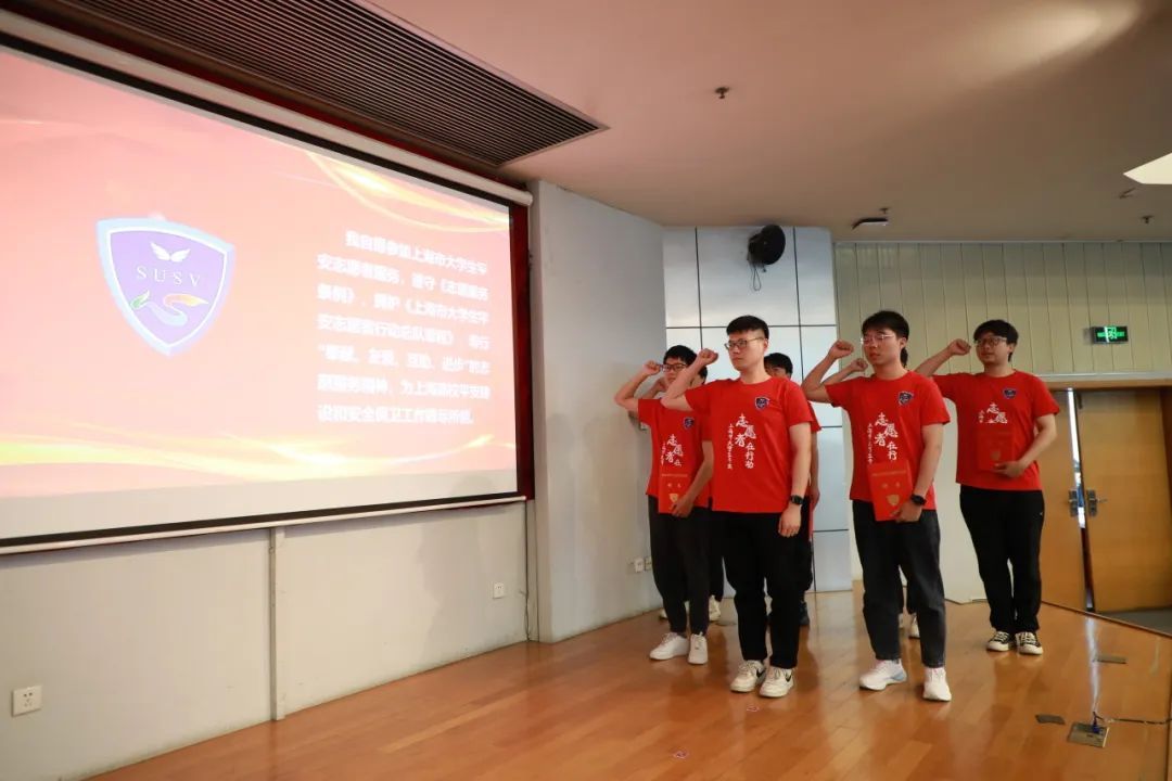 2018年,金沙集团1862cc成色大学生平安志愿者行动支队成立,开展平安校园志愿服务工作,充分发挥大学生在平安校园建设中自我管理力量。保卫处副处长王国正为大学生平安志愿者代表颁发聘书,并进行集体宣誓。