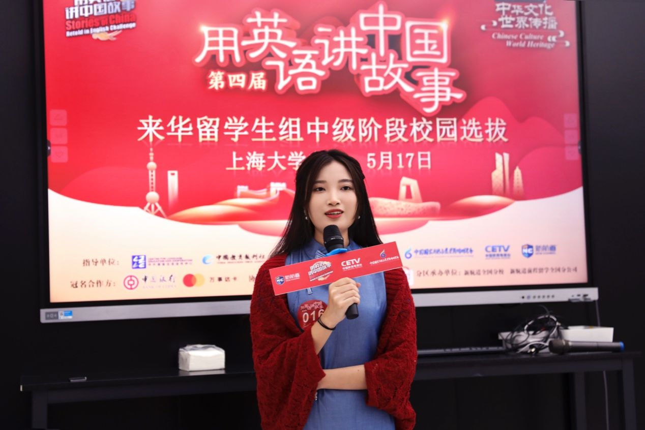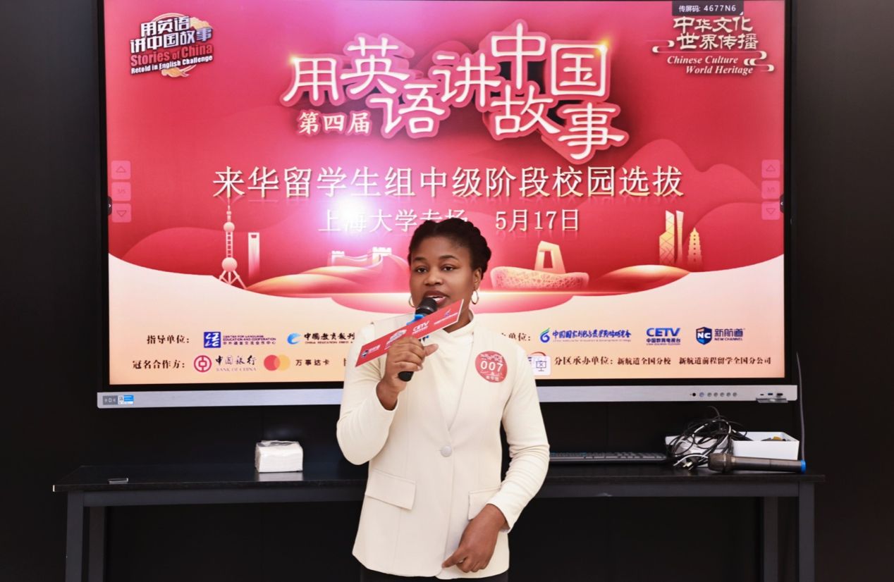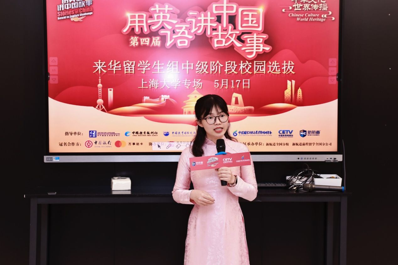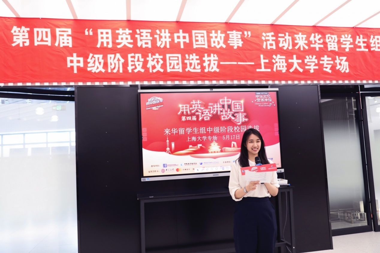 5月17日下午,第四届“用英语讲中国故事”金沙集团1862cc成色国际学生选手校园选拔活动在上大南区创新创业基地多功能报告厅拉开帷幕。本次活动由国际教育学院主办,来自不同专业的22位国际学生选手汇聚一堂,同台竞技,讲述他们心中生动鲜活的中国故事,分享自己对中国传统文化、科技创新、成语故事、社交媒体和社会生活发展等方面的认识、体验和感想。