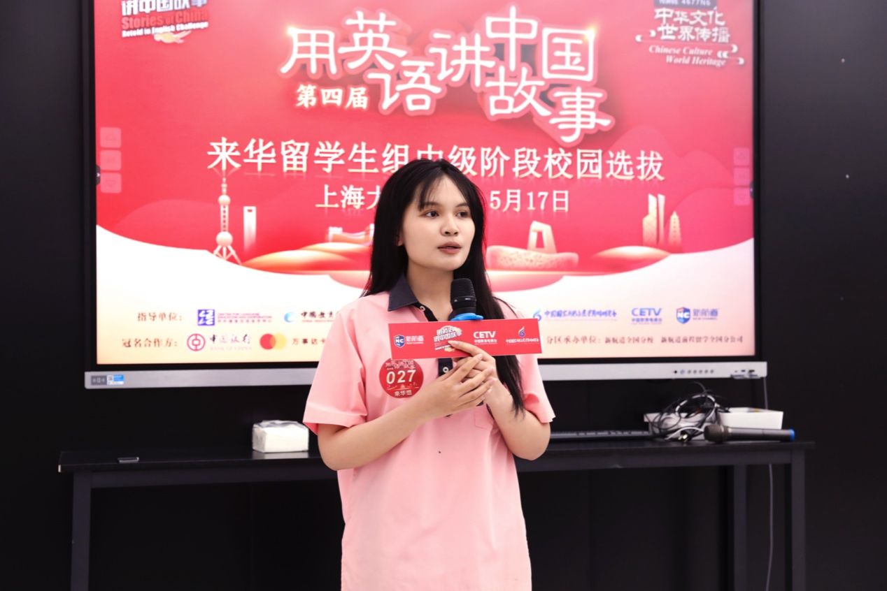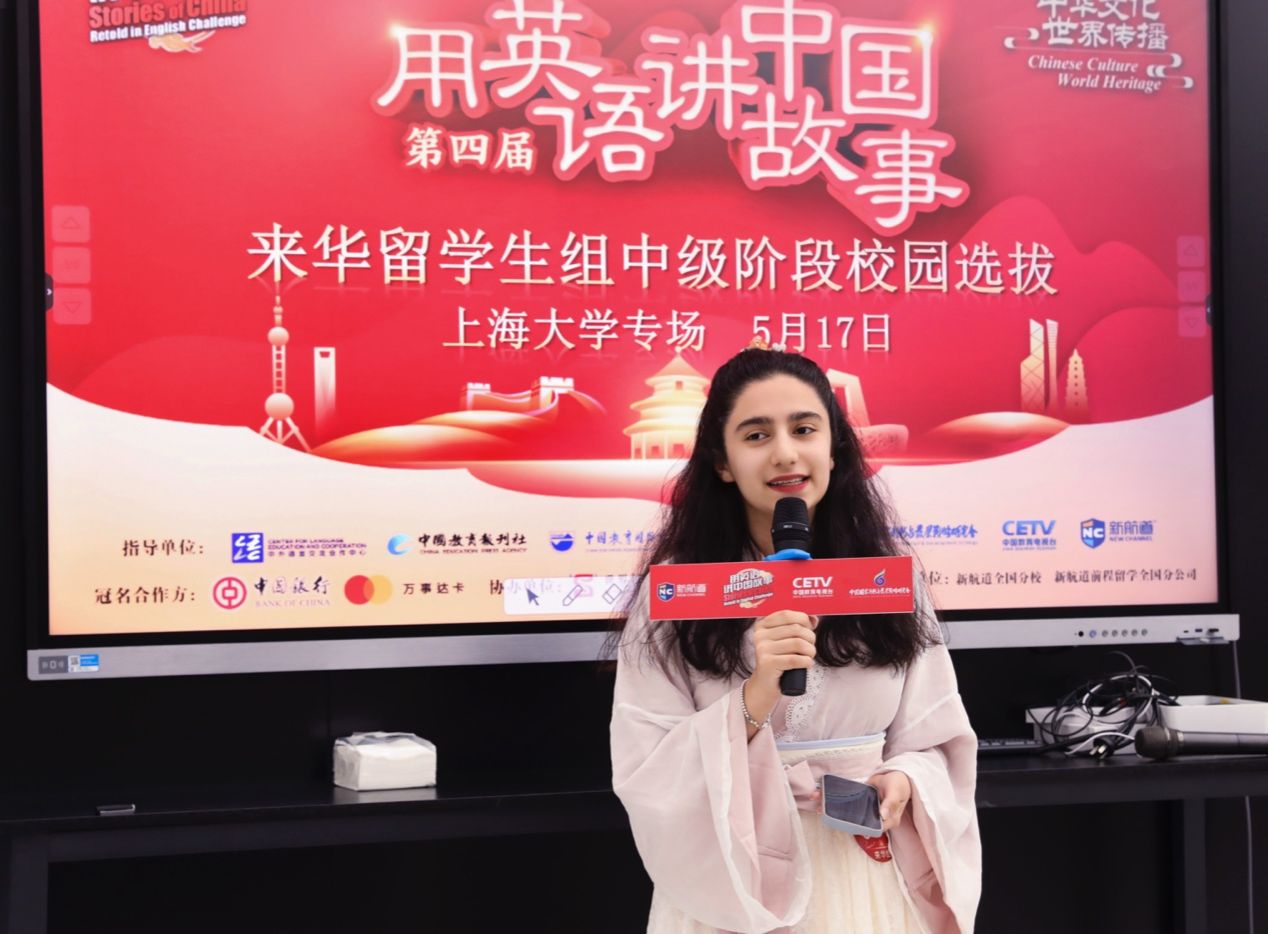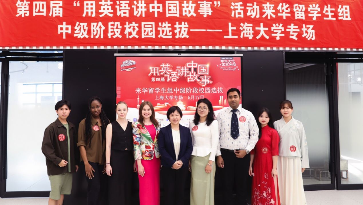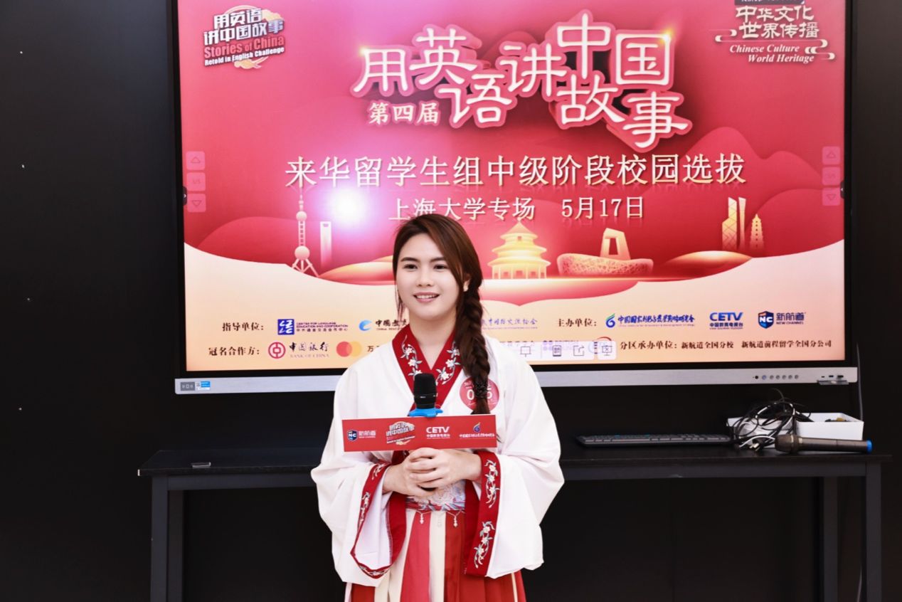 5月17日下午,第四届“用英语讲中国故事”金沙集团1862cc成色国际学生选手校园选拔活动在上大南区创新创业基地多功能报告厅拉开帷幕。本次活动由国际教育学院主办,来自不同专业的22位国际学生选手汇聚一堂,同台竞技,讲述他们心中生动鲜活的中国故事,分享自己对中国传统文化、科技创新、成语故事、社交媒体和社会生活发展等方面的认识、体验和感想。