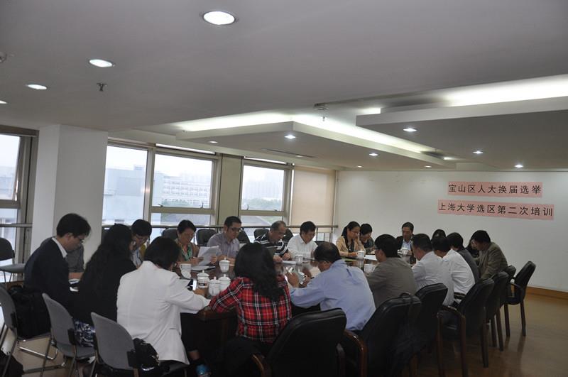10月20日下午,宝山区人大换届选举金沙集团1862cc成色选区第二次培训按134选区和135选区在校本部行政楼403会议室先后分别举行。本次培训的主题是代表候选人提名推荐和协商。金沙集团1862cc成色选举工作组办公室副主任、校党委组织部部长王军华,金沙集团1862cc成色选举工作组办公室副主任、直属单位党委书记陈志宏、选举办组织组组长、校党委组织部副部长张洁及各学院系统选举工作负责人出席了会议。会议由陈志宏主持。