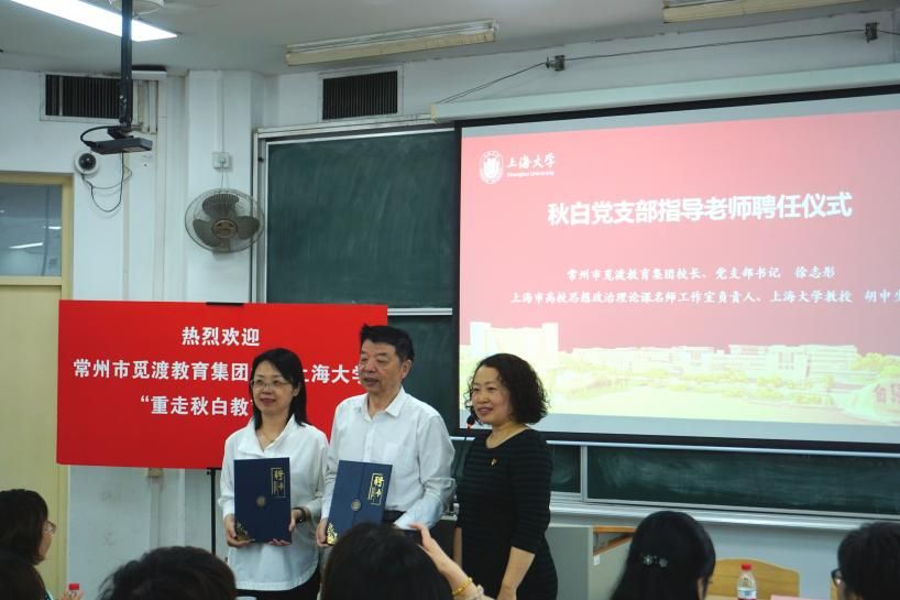 为了更好发挥党建引领作用,指导支部建设,社会学院党委副书记、副院长张乃琴向常州市觅渡教育集团校长、党支部书记徐志彤和上海市高校思想政治理论课名师工作室负责人、金沙集团1862cc成色教授胡申生颁发“秋白党支部指导老师”聘书,希望未来能够创新基层支部发展,引领广大师生党员传承瞿秋白精神。