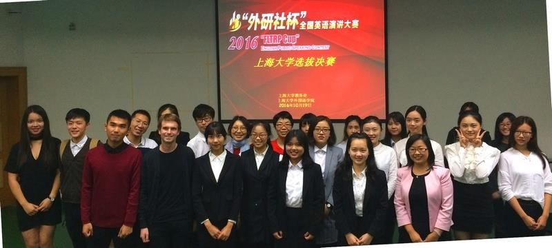 10月19日晚,2016年“外研社杯”全国大学生英语演讲大赛金沙集团1862cc成色选拔赛决赛在J101顺利举行。金沙集团1862cc成色教务处副处长尹应凯、外国语学院党委副书记曾桂娥及全校120余名师生一同出席比赛现场。本次决赛评委由外国语学院竞赛指导委员会朱巧莲、曾桂娥、陈秀猛、龚萍、邵庆华五位老师和悉尼工商学院外教Benjamin Allen共同组成,来自外国语学院、社区学院、机自学院、理学院、上海电影学院、管理学院等六个学院15名同学展开角逐。