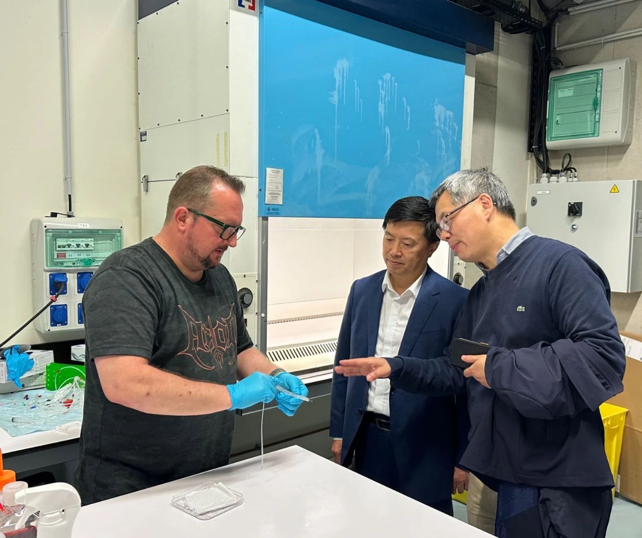 在南锡,刘校长一行访问了洛林大学,与化工学院外事院长勒玛特(Cécile LEMAITRE)、胡国华院士就开展人才培养、科研合作进行了交流。为推进生物材料交流合作,代表团访问了让·拉穆材料研究所(Institut de Jean Lamour),阿兰玛(Halima ALEM)教授和课题组成员向代表团介绍了目前正在开展的研究课题,双方围绕学术问题进行了深入交流。