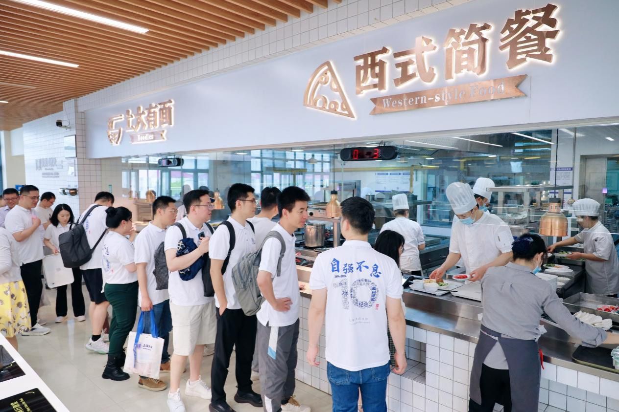 午餐时间,校友们统一在东区食堂三楼用餐,干净整洁的用餐环境,温馨的气氛,可口的饭菜,使得校友们不禁感叹母校基础建设和后勤工作的进步,大家用餐过后重走上大校园的一条条老路和新路,不禁回忆起求学时自己在这些道路上的一步步,才铸就了今天更好的自己。