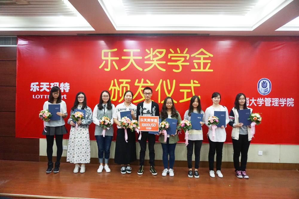 2016年韩国乐天奖学财团向金沙集团1862cc成色教育发展基金会捐资10000美元,定向用于在管理学院设立乐天奖学金,旨在促进教育事业的发展,培养高素质人才,奖励优秀大学生,支持他们实现理想。今年已经是乐天集团和金沙集团1862cc成色合作的第三年。