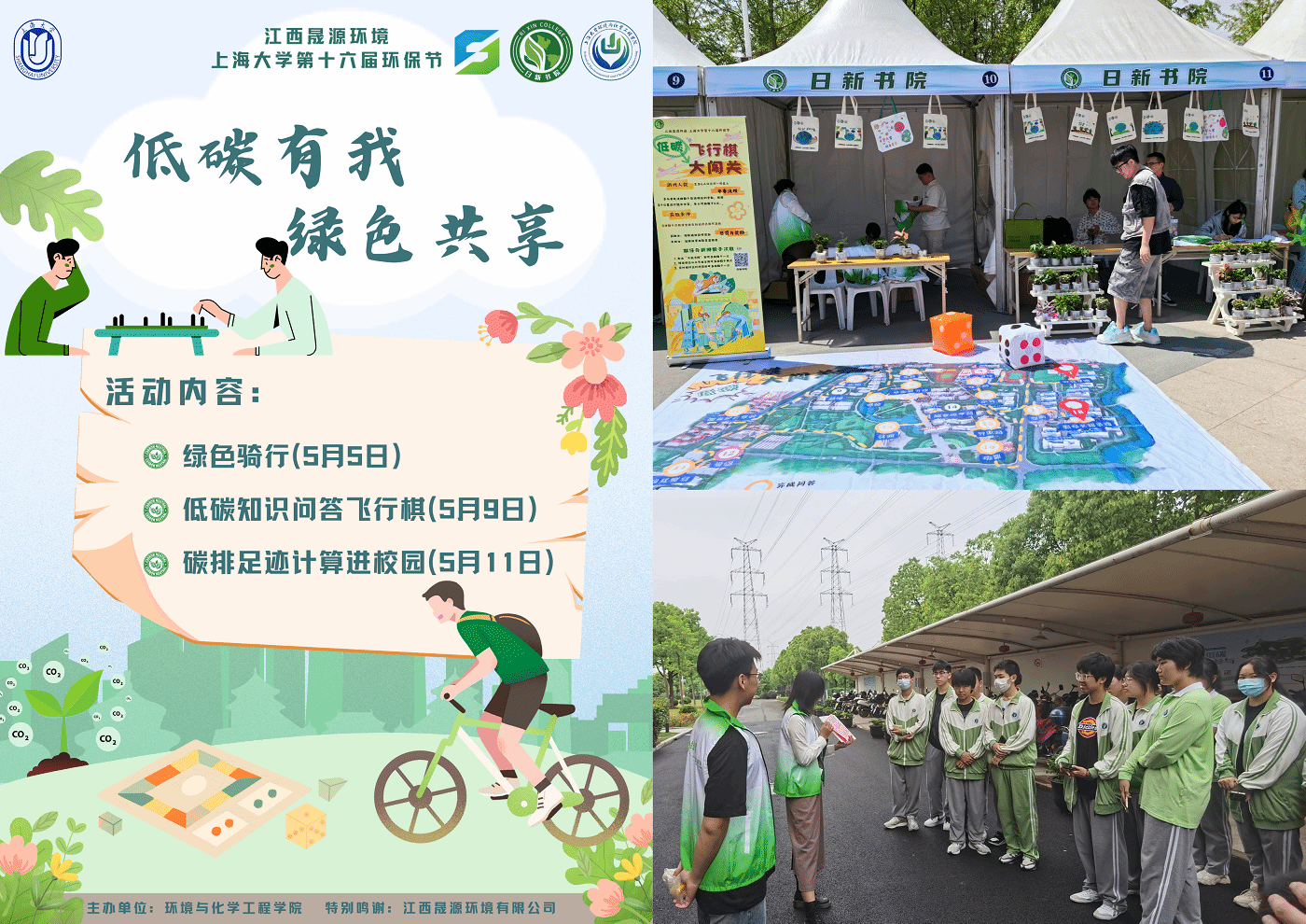 5月5日下午,“绿色骑行”特别活动在宝山校区顺利举行。本次活动聚焦1994-2024的“30周年”,1994年出生的李瑞飞老师,2004年入学的王律校友,2014年毕业的潘辰苑老师,2024年即将毕业的侯卫东同学,以及来自国际部、环化学院、钱伟长学院、美术学院、文学院的31位校友、老师和同学参与了活动。骑行既是一种绿色低碳的生活方式,也是一种积极健康的生活态度,更是对环境保护、资源节约以及可持续发展的积极响应。5月9日金沙集团1862cc成色第二届书院文化节大型路演期间,面向全校师生推出全新的“低碳飞行棋大闯关”游戏,让同学们通过游戏增加对低碳知识的理解和认识,为减碳行动出上一份力。5月11日,在静安团区委的牵头下,学院团委与上海市闸北第八中学开展结对共建,我院绿萤社会实践队受邀前往闸北八中进行参观交流互访,以“碳排放足迹计算进校园”为切入点,为八中学子详细讲解了固碳的原理和意义,使用简单的工具进行树木固碳能力的调查测算。”低碳有我,绿色共享“系列活动将节能减排的意识融入到生活的点点滴滴,为本届环保节注入新活力。