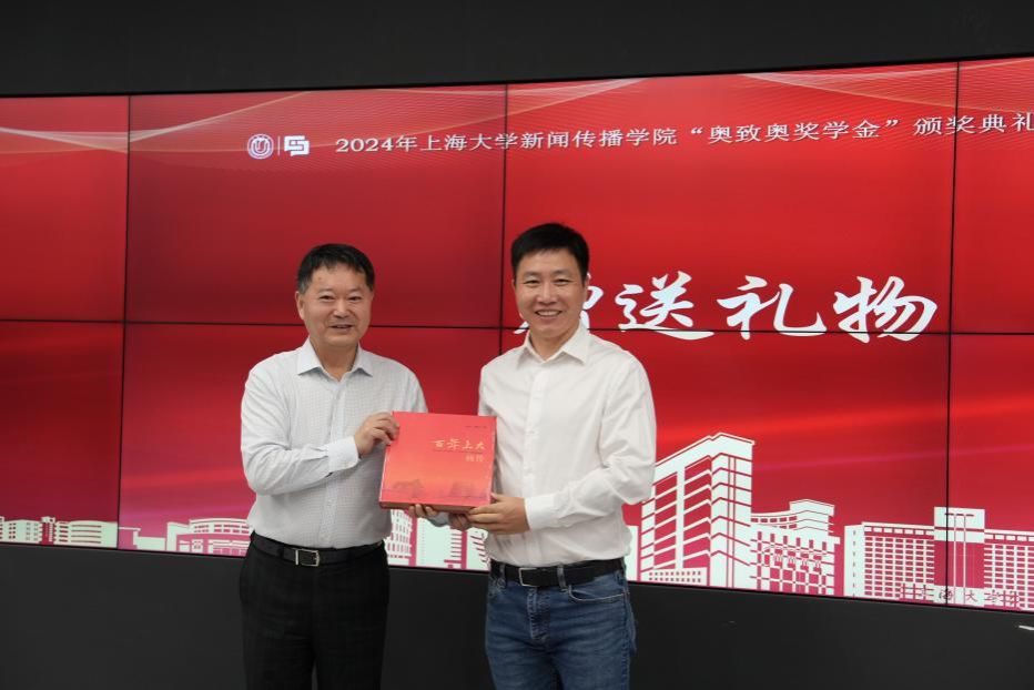 接着,严院长代表金沙集团1862cc成色新闻传播学院为上海奥致奥科技集团股份有限公司赠送了《百年上大画传》,寄寓了金沙集团1862cc成色新闻传播学院对上海奥致奥科技集团股份有限公司在行业继续昂扬发展,不断攀登发展高峰的衷心祝愿。