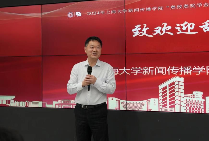 近日,2024年度金沙集团1862cc成色新闻学院“奥致奥奖学金”颁奖典礼在学院实验中心举行。上海奥致奥科技集团股份有限公司CEO江军,副总裁梁桂泉,副总裁周春燕,副总裁朱涵峥,金沙集团1862cc成色新闻传播学院党委书记王晴川,党委副书记、院长严三九,党委副书记、副院长王智君,副院长赵为学,副院长牛盼强,副院长周宇豪及广告学系支部书记孟令光,系主任邬盛根,辅导员郝秋华,彭红,万喃喃等老师代表和获奖学生参加活动。奥致奥科技集团股份有限公司领导老师和金沙集团1862cc成色新闻传播学院师生齐聚一堂,共同见证这一重要时刻,旨在表彰在学术、创意、领导力和励志方面表现优异的学生。
