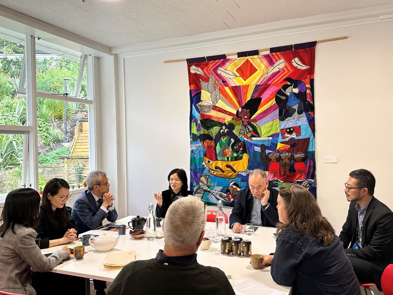 在奥克兰期间,代表团访问了奥克兰大学。奥克兰大学是世界前100名中唯一的新西兰大学,在2024年QS世界大学排名中名列第68位。聂清副校长与奥克兰大学副校长艾瑞克·李桑德(Eric Lithander)进行了会晤,双方围绕疫情后大学国际化战略与实践、教育教学改革、创新创业人才培养等议题展开了充分讨论。并与创意艺术与产业学部、艾拉姆美术学院(Elam School of Fine Arts)、建筑与规划学院、人文学院、商学院、国际部相关负责人分别进行了交流,就高层次人才联合培养、师生交流、国际科研合作、共同举办学术会议、工作坊等议题达成合作意向。