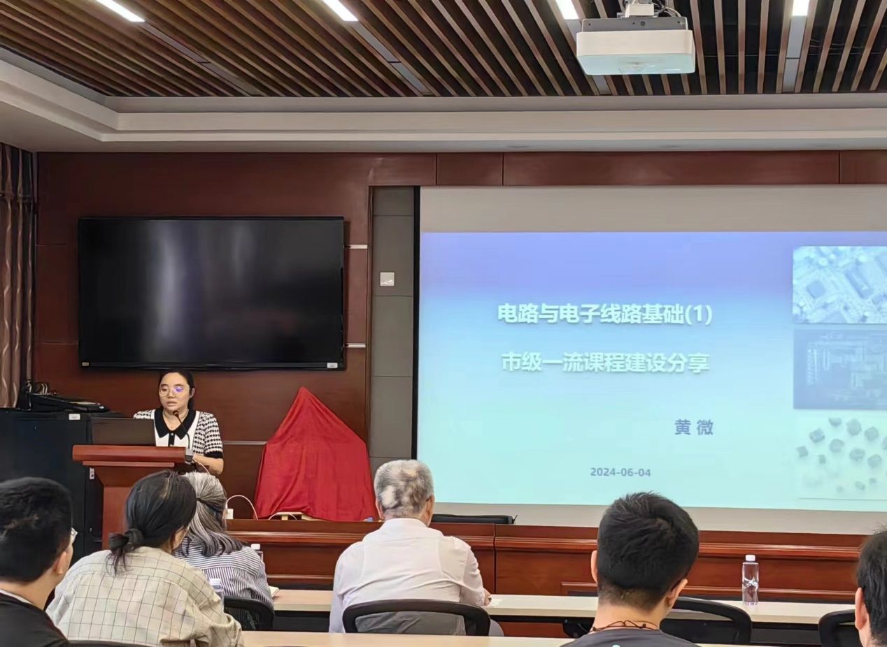 首先,黄微老师依托《电路与电子线路基础1》课程进行了课程建设分享。从课程的建设历程、课程面临的挑战、教学内容设计、教学案例设计、融合产业发展等多方面进行了介绍和交流。