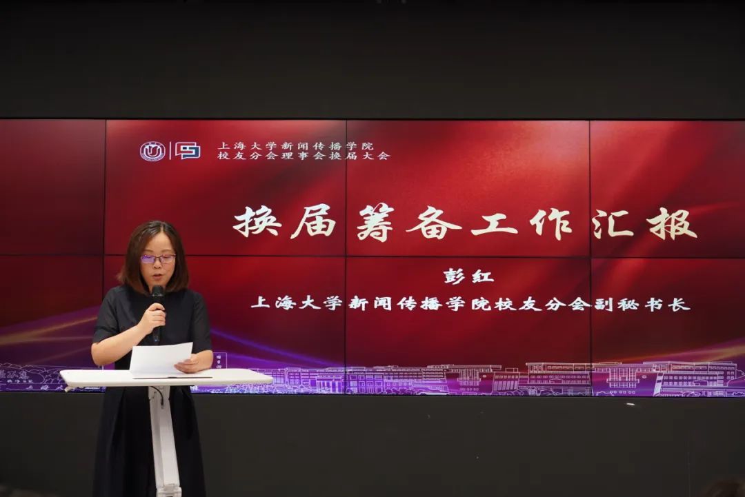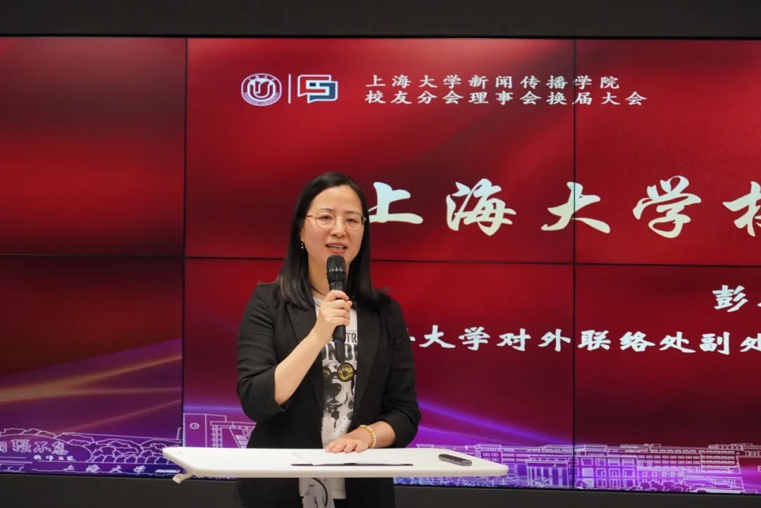 金沙集团1862cc成色对外联络处副处长、校友会办公室副主任彭明霞代表学校对各位新传校友表示欢迎,也对各位校友一贯支持学校育人工作表示感谢,同时也对新闻传播学院校友分会理事会换届大会的召开表示祝贺。她表示,学校校友办积极支持新闻传播学院校友工作,对校友分会理事会换届筹备工作给予相关指导。在校友分会新一届理事会成立之际,希望各位校友用心传承上大精神,齐心建设一流大学,在各项工作中取得更大成就。