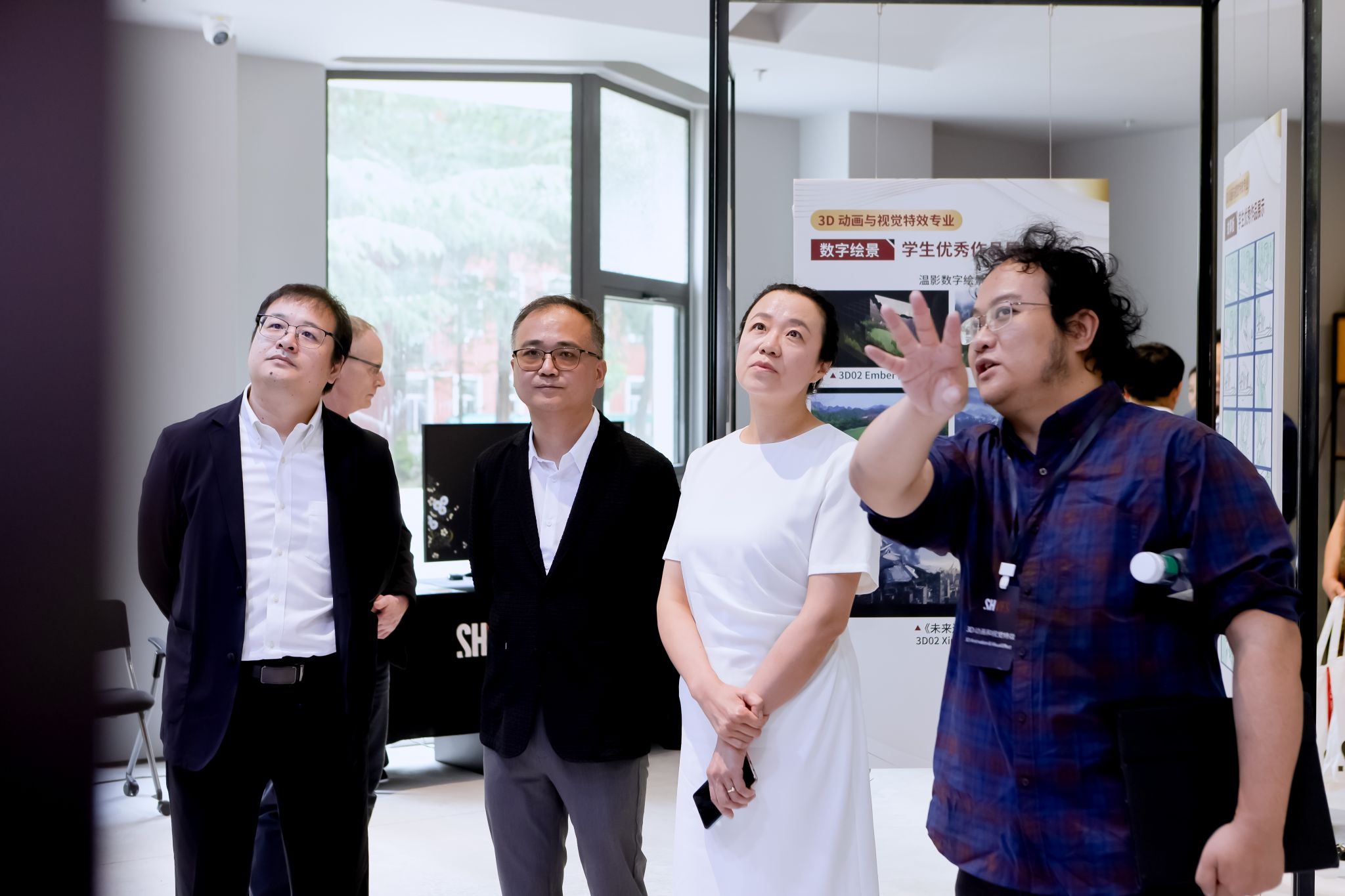 开幕式的尾声,参会领导、嘉宾一同参观了学院各大专业展区。各专业通过短片放映、表演剧场、数字交互、杜比全景声音频体验、特效造型还原、模型制作展示等形式,通过影像艺术、沉浸式戏剧演绎、数字媒体技术等方式极大地丰富了展演现场感官体验,展现出温影师生过往十年在影像艺术领域的独特见解和创造力。参观现场,大家纷纷驻足观看,共同感受师生的创作风貌。