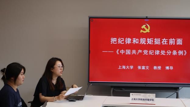 活动伊始,由新青年第一党支部的苗雨玮和本科生党支部的阿丽亚·叶尔布拉提为师生带来了两节微党课展示。苗雨玮同学微党课的主题是《讲老上大人物的党纪故事,述新时代青年的传媒担当》,该党课以纪律建设为主题,聚焦蔡和森、瞿秋白、邓中夏三位老上大人物的历史故事,深情缅怀革命先辈的丰功伟绩,重温党的早期纪律建设的历史。苗雨玮同学强调,每个人都是信息的发布者,作为新闻传播学院的学子,要做好新时代风云的记录者,还要恪守新闻职业道德和宣传纪律。阿丽亚同学讲述的微课程题目是《新时代“小白杨”扎根边疆的青春力量》。在课程中,阿丽亚同学为大家介绍了自己如何带领团队深入新疆生产建设兵团,发掘兵团故事、传播兵团文化、弘扬兵团精神。阿丽亚表示,七十年来,“兵团精神”引领着一代代兵团人为屯垦戍边作出了不可磨灭的历史贡献。“兵团精神”作为生动鲜活的爱国主义教育和革命传统教育教材,对于新时代大学生产生了巨大的鼓舞激励作用。她提出,新闻传播学子应该在祖国最需要的地方发挥自己的力量。
