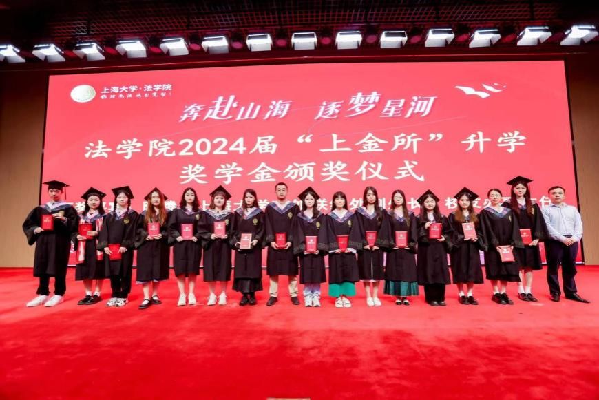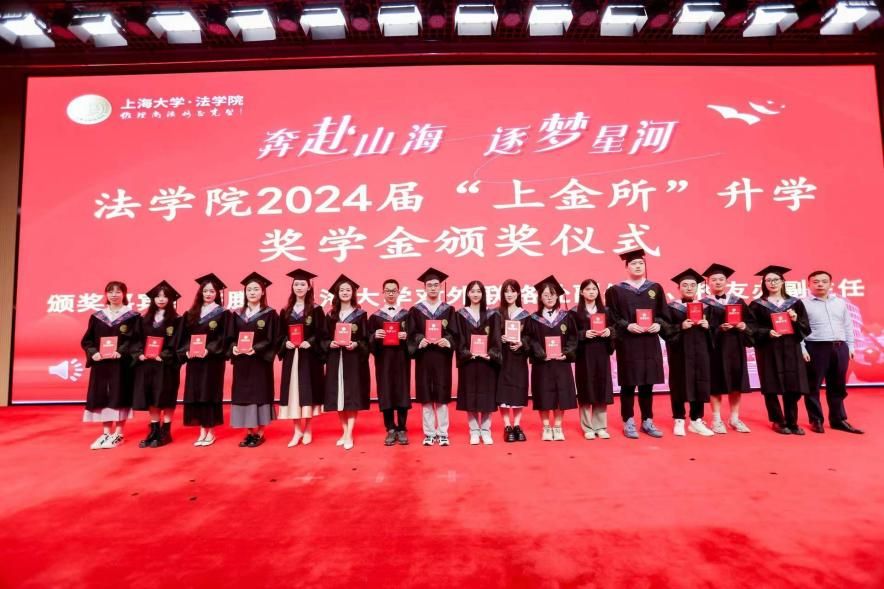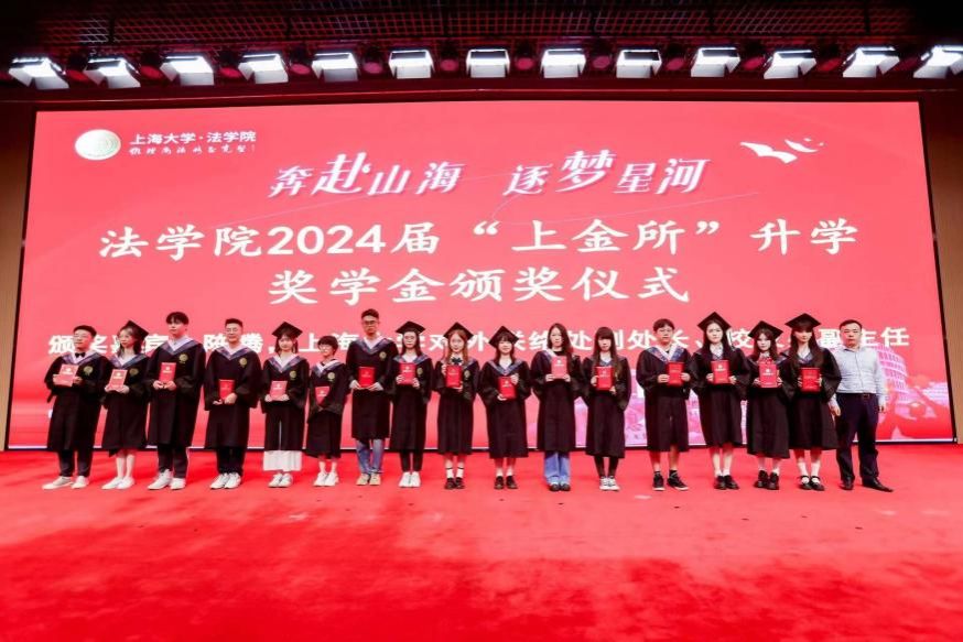 在2024 年“上金所”升学奖学金颁奖仪式上,金沙集团1862cc成色对外联络处副处长、校友办副主任陈腾,法学院文学国教授共同为获得“上金所升学奖学金”的同学颁奖,预祝大家继续攀登法学高峰。