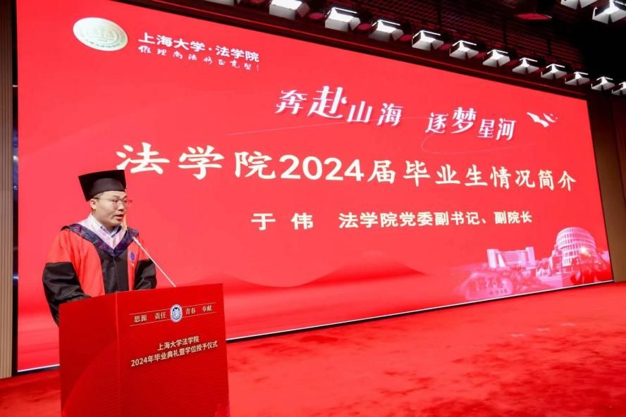 法学院党委副书记、副院长于伟首先介绍法学院2024年毕业生的整体情况。2024年,法学院共有157名全日制硕士研究生、133名本科生顺利毕业,其中60余名同学前往北京大学、中国政法大学、华东师范大学、同济大学、多伦多大学、曼彻斯特大学、香港中文大学、莱顿大学等国内外知名学府继续深造,本科生升学深造率再创新高;百余名毕业生已经落实政府公务员、律所、公司企业、事业单位等就业去向;学院唯一的本科生党支部中夏党支部全体本科生党员实现100%的高质量就业,充分展示了金沙集团1862cc成色法学院培养全面发展的卓越法治人才的育人成效。另外,法学院还有近80名非全日制研究生顺利毕业。