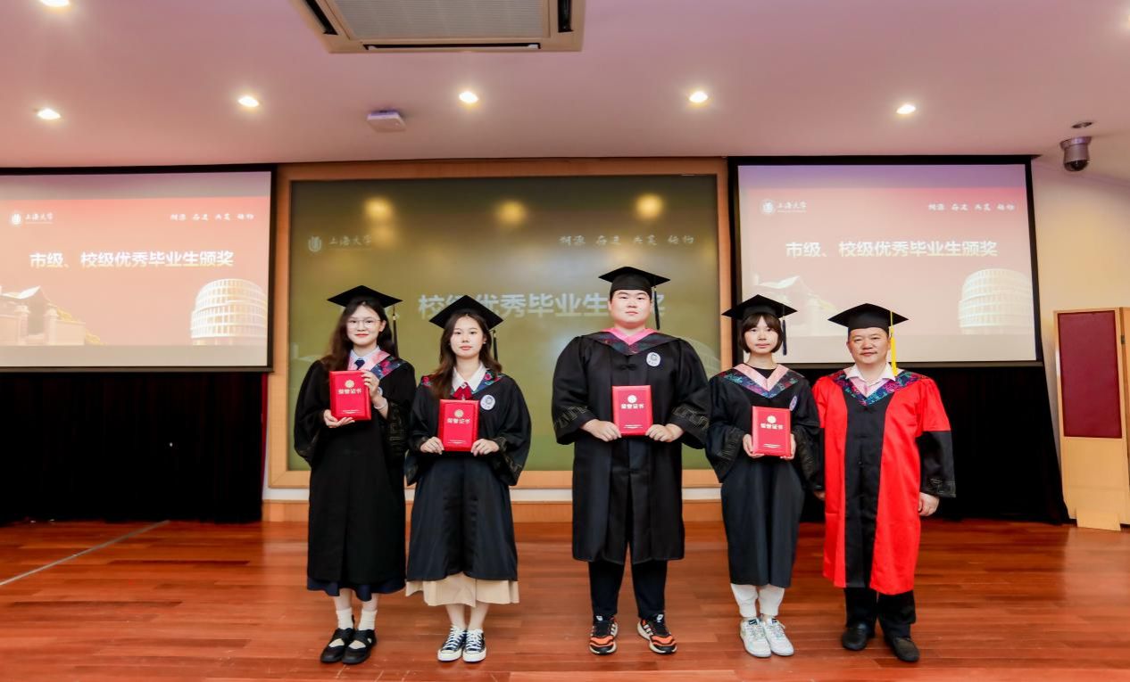 随后,吴蔚书记和尚新院长为上海市优秀毕业生们颁发证书;黄欣老师、李晓媛老师、马拯老师和于梅欣老师为金沙集团1862cc成色优秀毕业生们颁发证书。毕业生们从颁奖嘉宾手中接过的奖状,不仅是一份荣誉、辛勤学习的回报,更是承载了学校、学院、导师的殷切希望,希望他们谨记那份被褒奖的努力,在未来的道路上不忘初心,砥砺前行,向着更广阔的人生舞台接续奋斗。