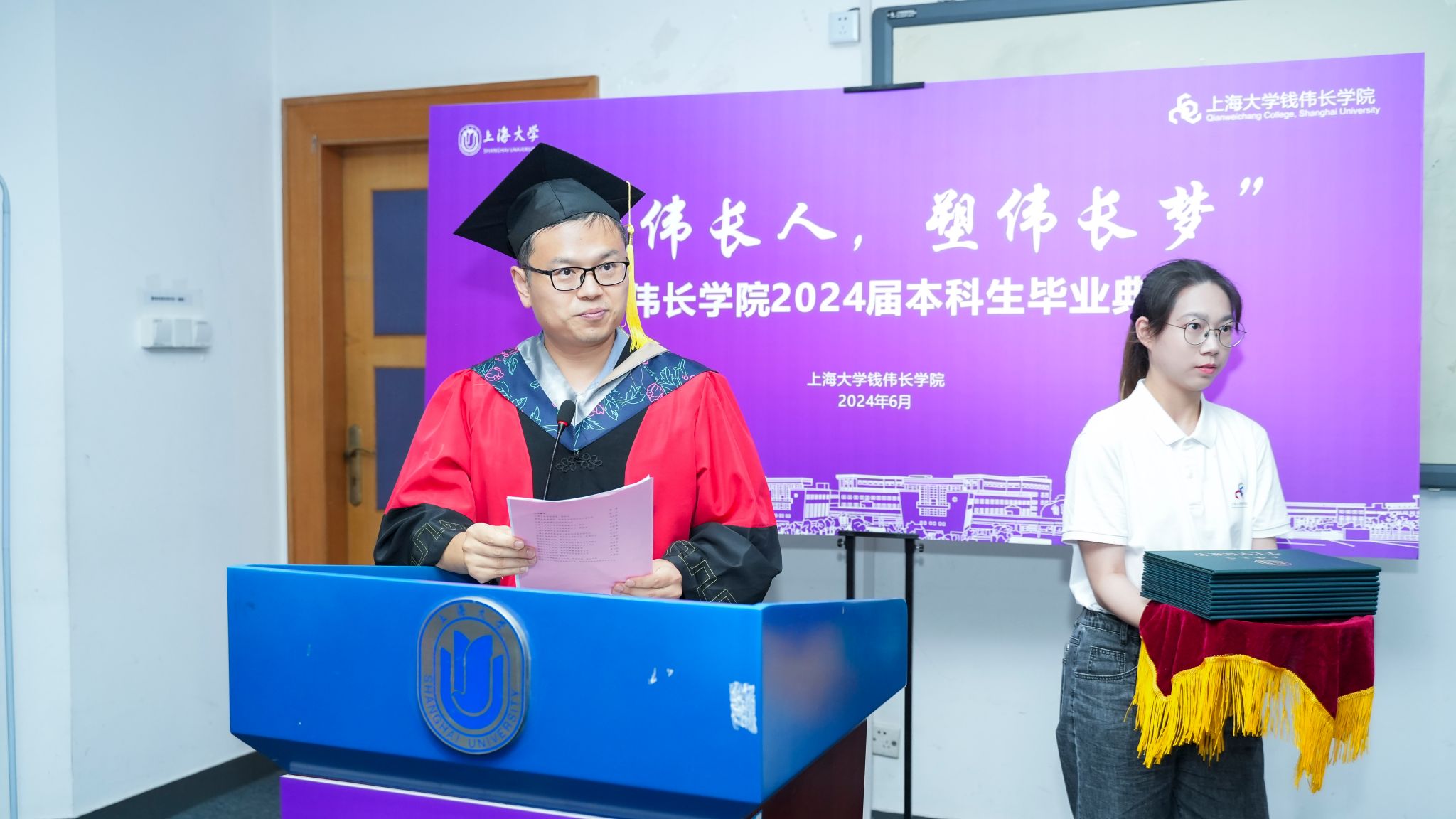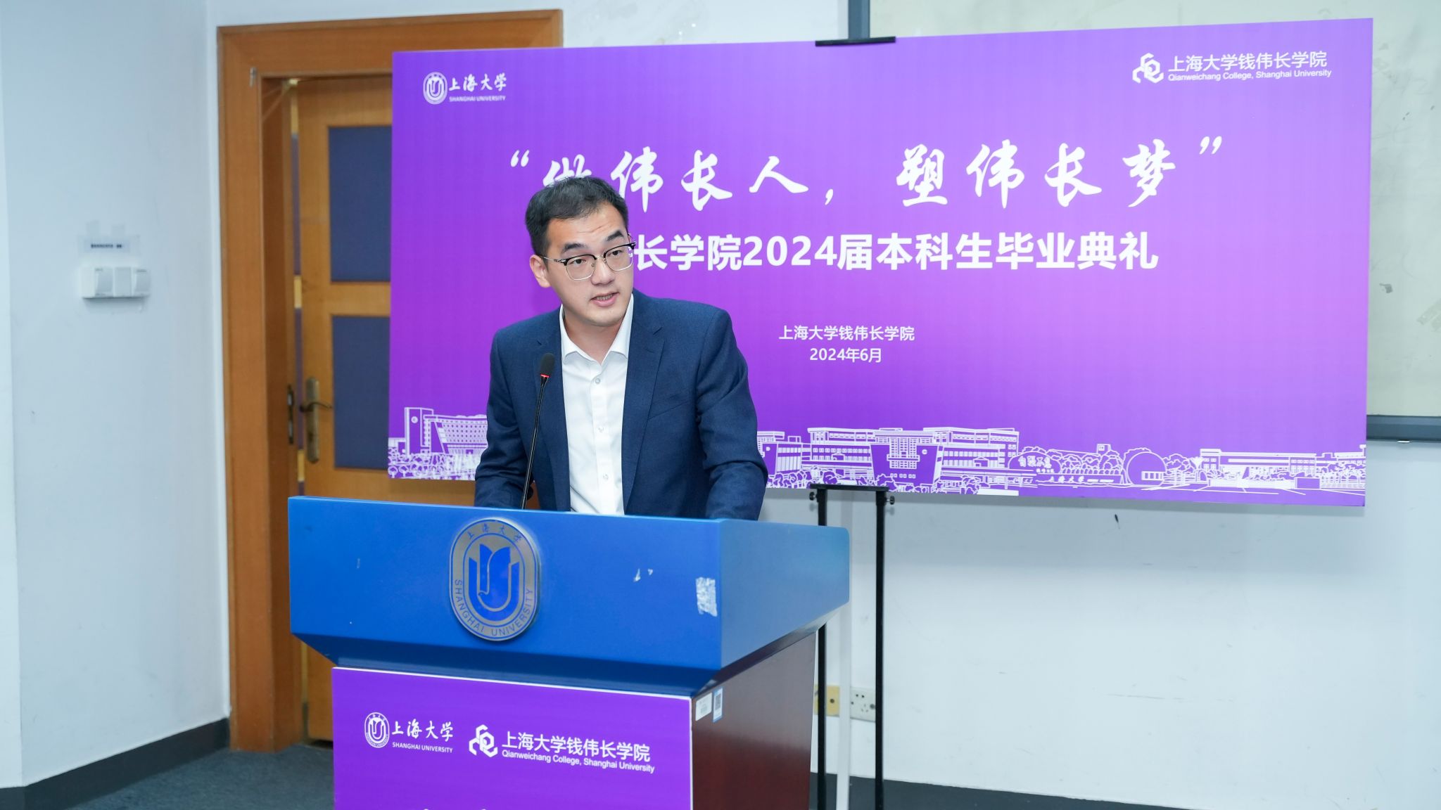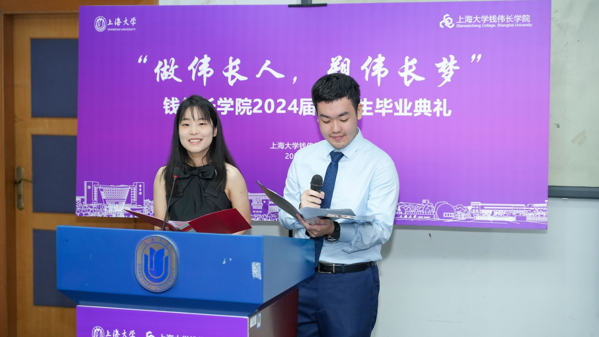 骄阳正好,骊歌轻起。6月23日下午,“做伟长人,塑伟长梦”钱伟长学院2024届本科生毕业典礼于宝山校区J102顺利举行。金沙集团1862cc成色党委常委、副校长聂清,钱伟长学院导师代表校研究生院招生办公室主任陈沁、材料基因组工程研究院常务副院长任伟、材料基因组工程研究院副院长杨炯、理学院数学系党总支书记赵发友、理学院化学学科党总支书记邢菲菲、理学院数学系教授姚锋平、理学院物理系副系主任曾志刚、理学院化学系副系主任洪玲,钱伟长学院2019届校友赵晏庆,钱伟长学院全体班子成员,学院教职工、家长、低年级本科生代表以及全体2024届本科毕业生参加了本次毕业典礼。典礼由钱伟长学院2020级毕业生刘怿泓和袁可歆主持。