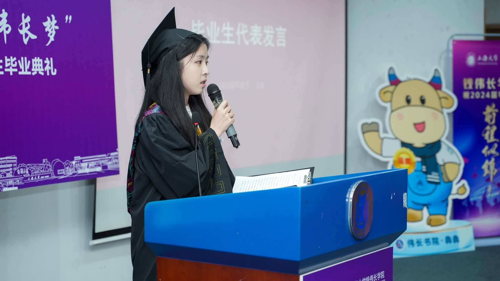 聂清副校长深情寄语2024届毕业生,表达了对毕业生们的祝贺和美好祝福。她为同学们四年来所取得的成就感到骄傲和自豪,也为同学们未来的无限可能感到由衷的期待。她希望同学们在未来的学习生活中,自强不息、做伟长人、塑伟长梦,保持一颗开放的心态,正确认知世界,明智地运用所学知识,去创造世界,改变世界!