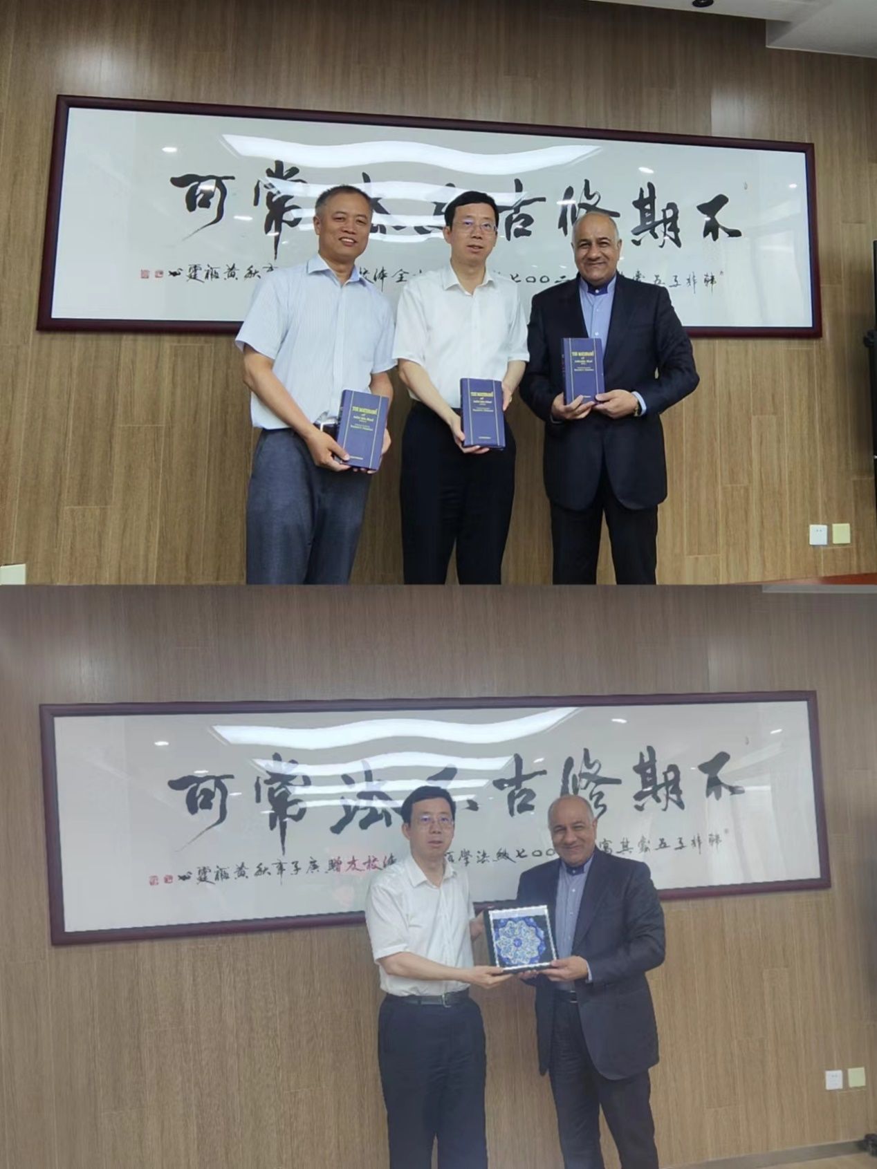 李凤章院长简要介绍了学院办学性质、学生规模、专业设置、人才培养等情况,并就学院的国际化战略做了介绍,金沙集团1862cc成色法学院在本科阶段有英美法实验班,在硕士阶段开设资源能源涉外法治人才培养项目,未来希望和伊朗外交部国际关系学院在能源法、文化遗产保护,国际组织等方面开展合作。