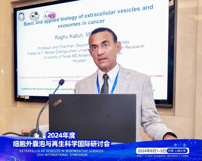 在大会主旨报告环节,美国德克萨斯大学MD Anderson癌症中心教授、美国细胞外囊泡学会主席Raghu Kalluri教授就“细胞外囊泡在癌症诊断与治疗中的基础与应用生物学研究”发表演讲,清华大学尹航教授就“细胞外囊泡的基础研究与生物医学应用”发表演讲,美国哥伦比亚大学生物医学工程系讲席教授程柯就“心脏修复的微创及无创外泌体治疗”发表演讲。