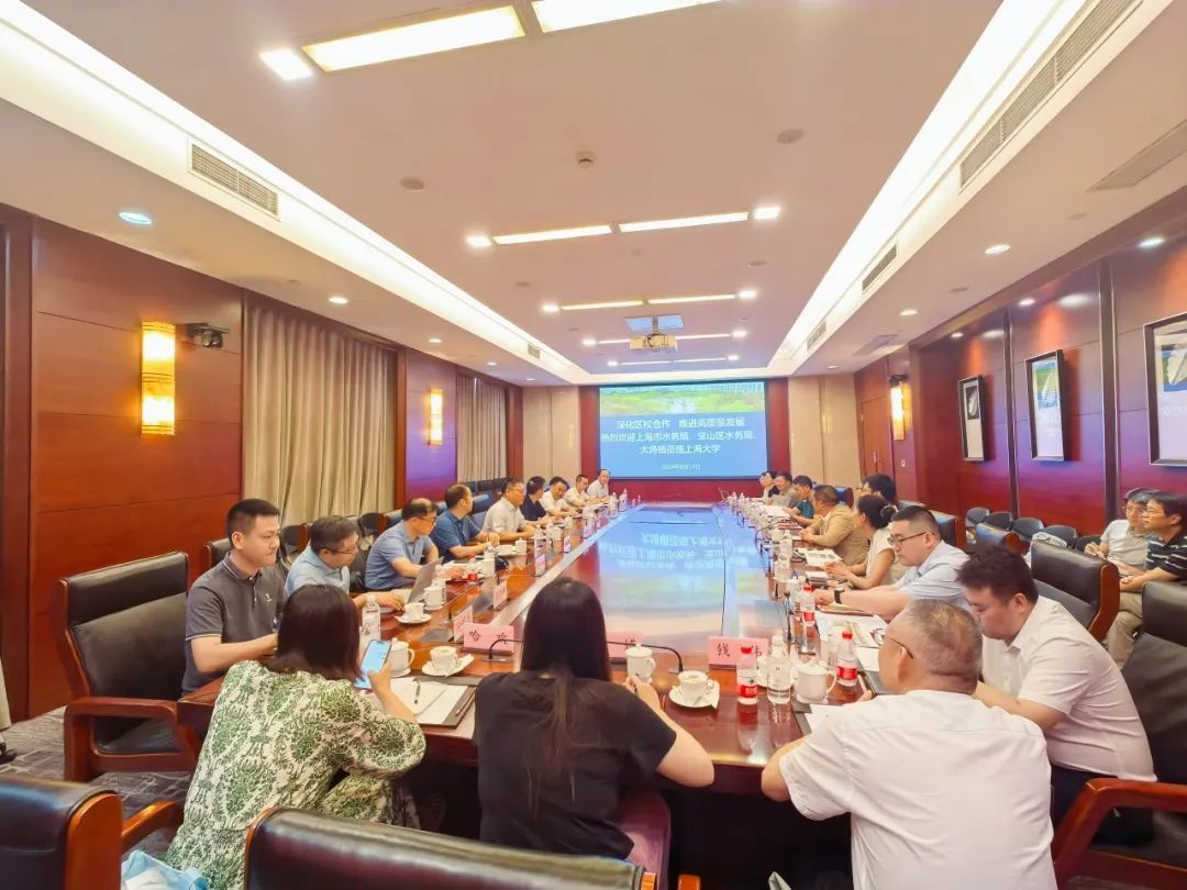 8月13日,“深化区校合作,推进高校水环境治理高质量发展”沟通推进会在宝山校区举行。上海市水务局副局长阮仁良、二级巡视员马维忠、水利处副处长韩昌来,宝山区水务局局长王大远、副局长曹波,宝山区大场镇副镇长陈阳,金沙集团1862cc成色党委常委、副校长王从春,后勤保障部部长张基涛,副部长刘亮、朱红辉,物业管理中心主任褚凤灵出席。上海市水务局计财处、水利处、水利事务中心,宝山区水务局水利管理科、区水利管理所,宝山区大场镇城建中心、大场镇河长办,金沙集团1862cc成色后勤保障部相关职能部门参加沟通协调会。