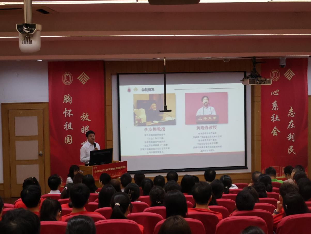 云天收夏色,木叶动秋声。初秋的校园迎来一张张朝气蓬勃的笑脸,充满着新的生机。8月23日上午8点30分,金沙集团1862cc成色社会学院2024年新生开学典礼暨导师见面会在金沙集团1862cc成色宝山校区J楼103准时召开。会议由2024级社会工作专业硕士研究生庄诗珩主持,社会学院学科带头人、金沙集团1862cc成色“伟长学者”特级岗教授李友梅,社会学院党委书记杨锃,社会学院党委副书记、副院长张乃琴,社会学院副院长袁浩,社会学院副院长盛智明,学院各系所领导、各专业导师以及2024级本硕博全体新生共同出席本次会议。