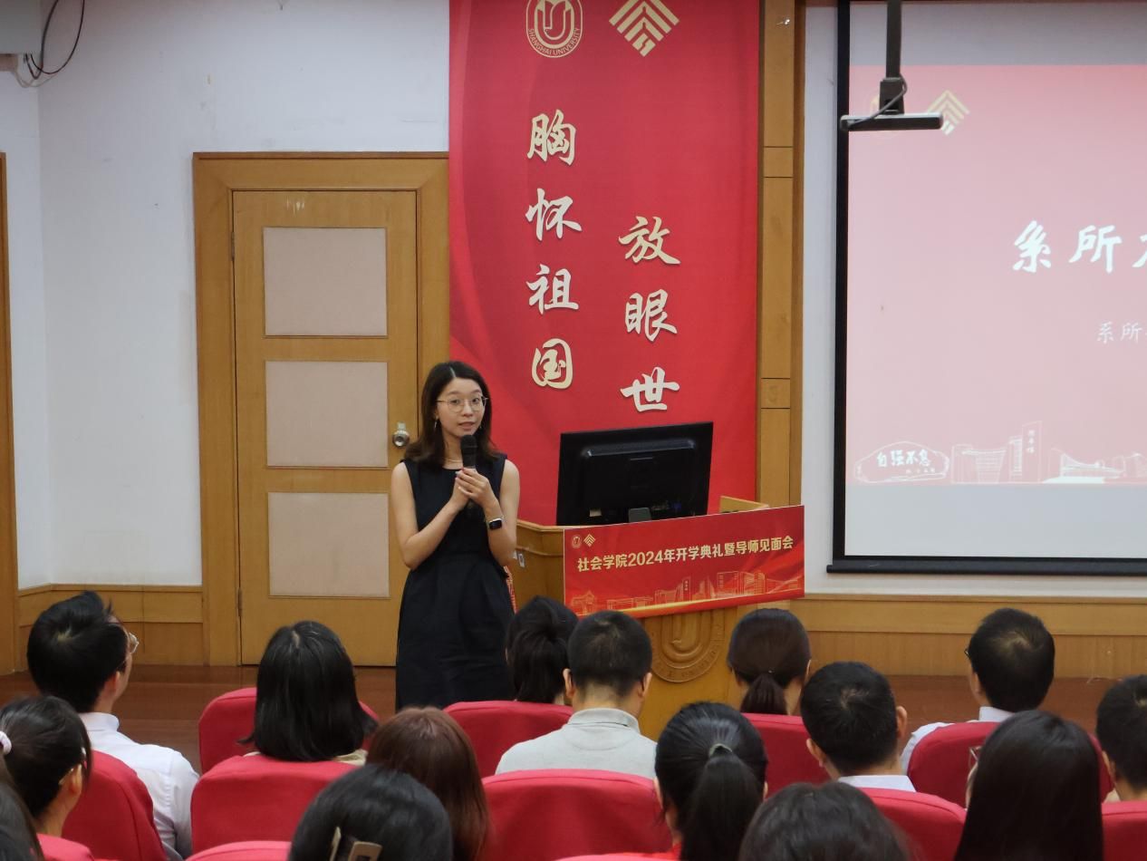 会议伊始,社会学院党委书记杨锃以“不被过度治理,成就更好自己”为题,给大家带来了开学第一课,并对来到社会学院求学的同学们表达了热烈的欢迎。杨锃老师从社会学学科渊源入手,进而向大家介绍了社会学院的基本情况。他着重指出,学院以“培养心系社会、志在利民的卓越创新人才”为目标,旨在培养具有社会责任感、反思与批判精神、社会创新力,具有多元文化和国际视野的复合型创新人才。最后,杨老师还勉励同学们要尽快融入到社院的大家庭中去,为建设具有重大国际影响力的研究型学院贡献力量。