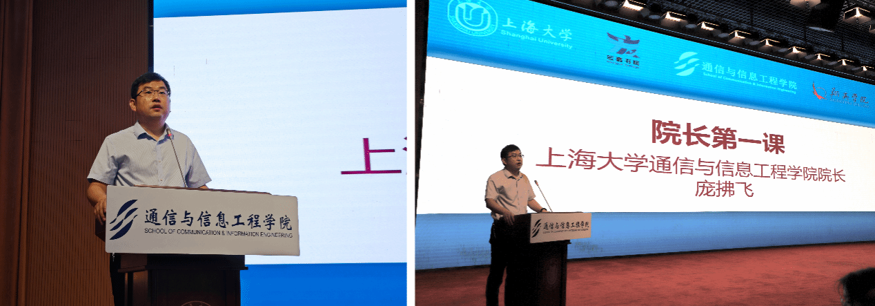 首先,全体起立,奏唱国歌。随后由通信学院院长庞拂飞老师为新生们带来院长第一课。马斯克的星链计划和华为在5G领域的成功,激励学生培养创新精神、打破常规、勇于探索、追求卓越。他希望学生将个人发展与国家需求结合,关注5G、6G、光网络、芯片技术和人工智能等高科技领域,为国家发展作出贡献。此外,他还强调了终身学习的重要性,新技术日新月异,要求学生不断更新知识和技能。学院为大家搭建好了学习、科研、竞赛等平台,提供各项支持。他鼓励学生积极参与实践,通过学院提供的课程项目和科创竞赛积极动手实践,并在团队合作中锻炼领导能力,最终为国家的繁荣昌盛贡献力量。