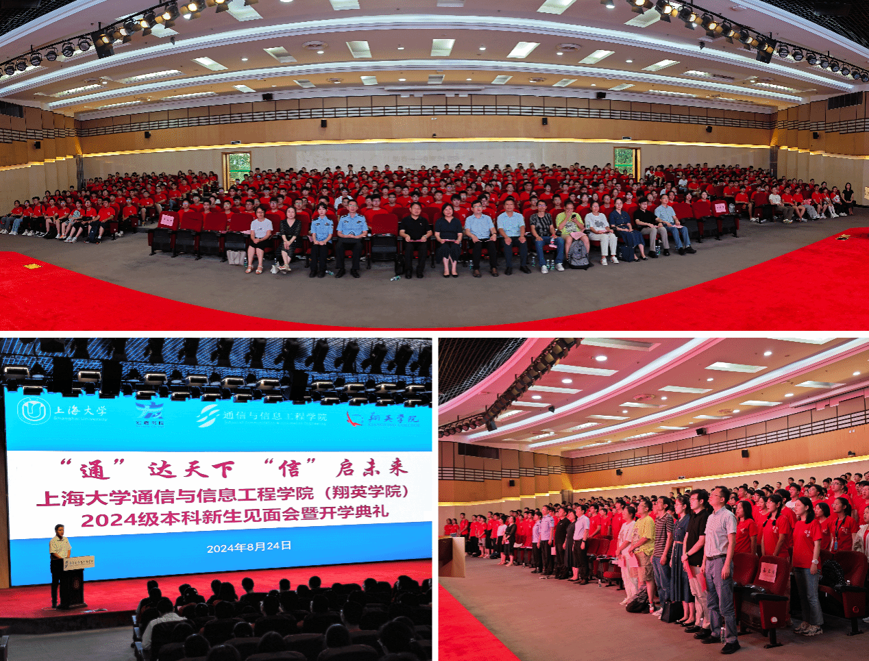 8月24日18:00,金沙集团1862cc成色通信学院、翔英学院2024级本科新生见面会暨开学典礼在图书馆报告厅成功举行。通信学院党委书记黄素娟老师,院长、党委副书记庞拂飞老师,副院长金彦亮老师,新生班主任、辅导员与447位本科新生共同参会。见面会由院党委副书记、副院长陈涛老师主持。