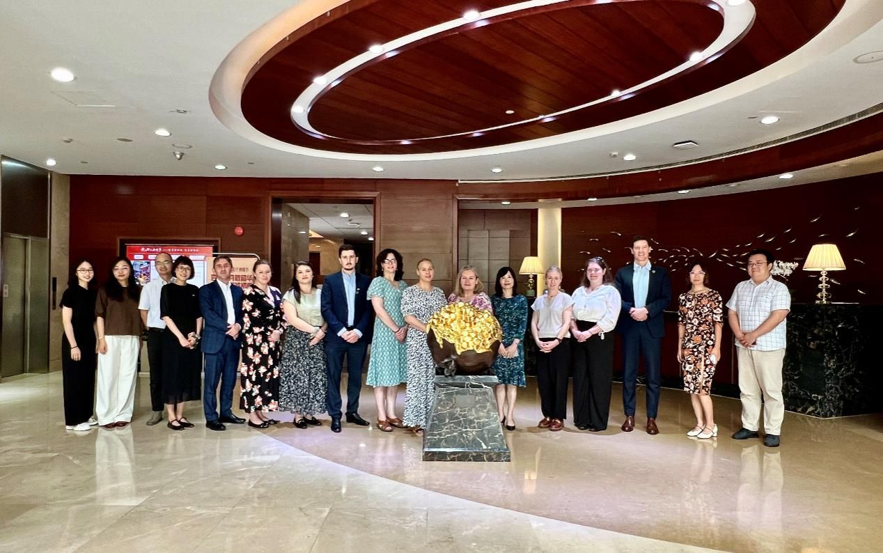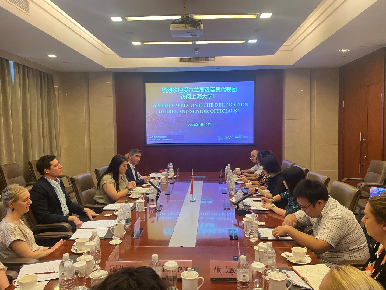 9月12日,来自爱尔兰外交部、总统府、企业贸易和就业部、农业食品与海洋部、科克市政府等相关部门的官员一行访问我校。爱尔兰驻沪副总领事Alan Ralph、爱尔兰驻香港副总领事Sadbh O’Reilly等代表与我校国际部、相关学院围绕合作办学、人文交流等内容进行了友好会谈。