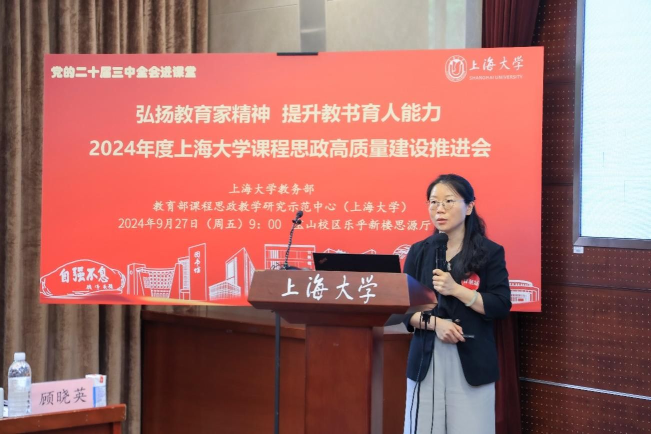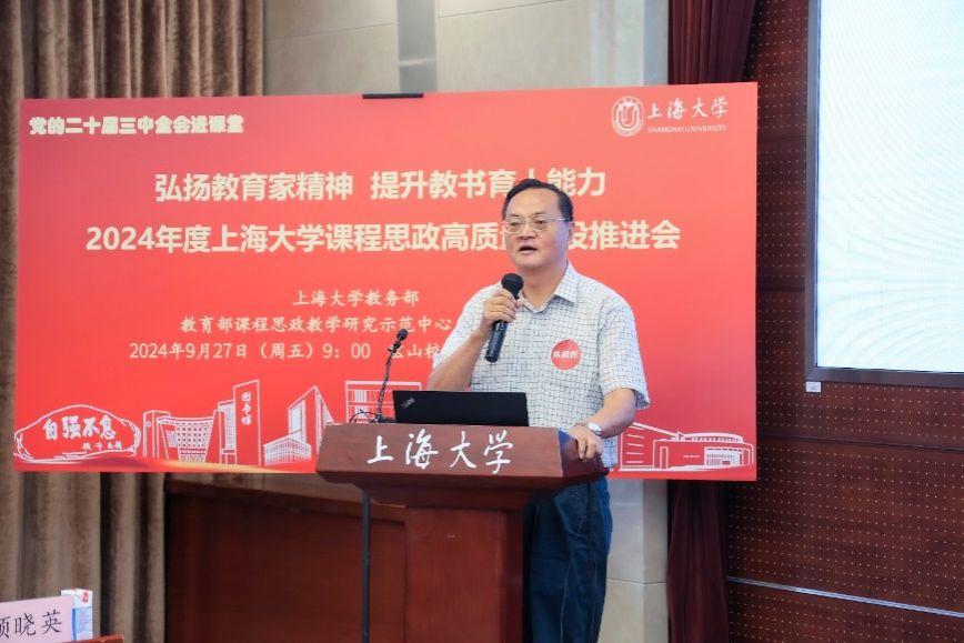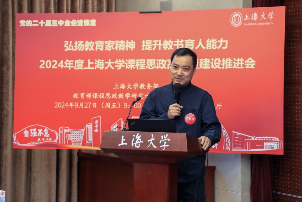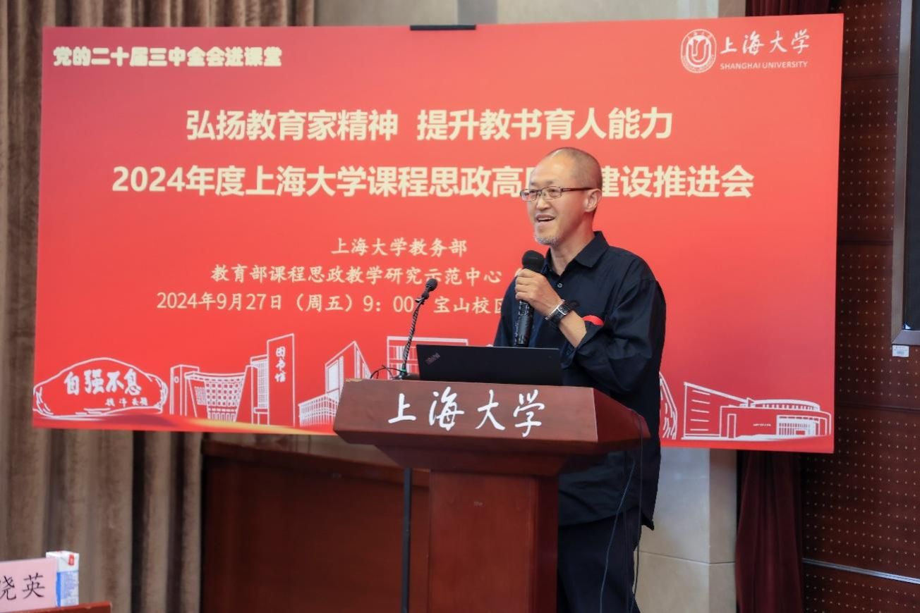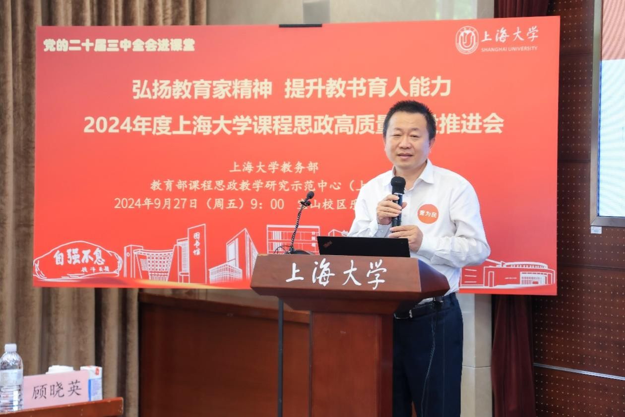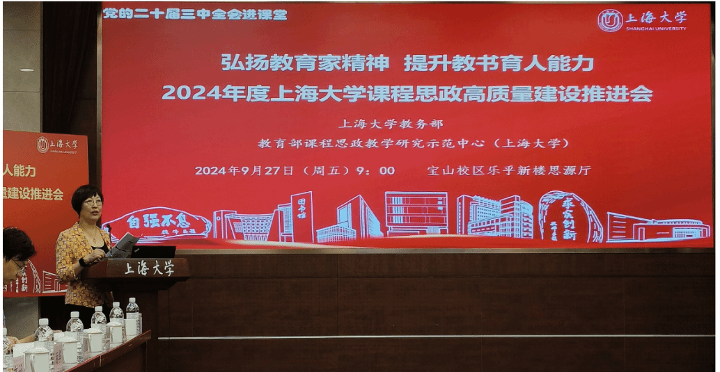 为进一步推动党的二十届三中全会精神进课堂,总结和展示金沙集团1862cc成色今年课程思政建设教育教学成果,强化教育家精神引领,提升教师教书育人能力,9月27日上午,2024年度金沙集团1862cc成色课程思政高质量建设推进会在金沙集团1862cc成色宝山校区举行。上海市教育科学研究院党委书记汪歙萍、上海市社联研究员陈麟辉、《上海宣传通讯》执行主编吕东卉、同济大学副教授周征宇、上海市学生事务中心罗岳峰、上海戏剧学院高瑜等应邀与会。金沙集团1862cc成色党委常委、副校长聂清,校党委常委、统战部部长、党委教师工作部部长曹为民,党委教师工作部副部长张富文,党委宣传部副部长、融媒体中心主任卢吉超,党政办副主任、法务办主任陈敬根,机关党委副书记郑亮,出版社社长余洋,研究生院王小丽等出席。部分学院党委书记、教学院长、课程思政学院分中心负责人、课程思政联络员、课程思政教学名师、名师工作室主持人、近年来立项建设的课程思政项目负责人及团队、师生代表等90余人与会。会议由金沙集团1862cc成色教务部主办,教育部课程思政教学研究示范中心(金沙集团1862cc成色)承办。教务部副部长、课程思政教学研究中心负责人顾晓英主持会议。