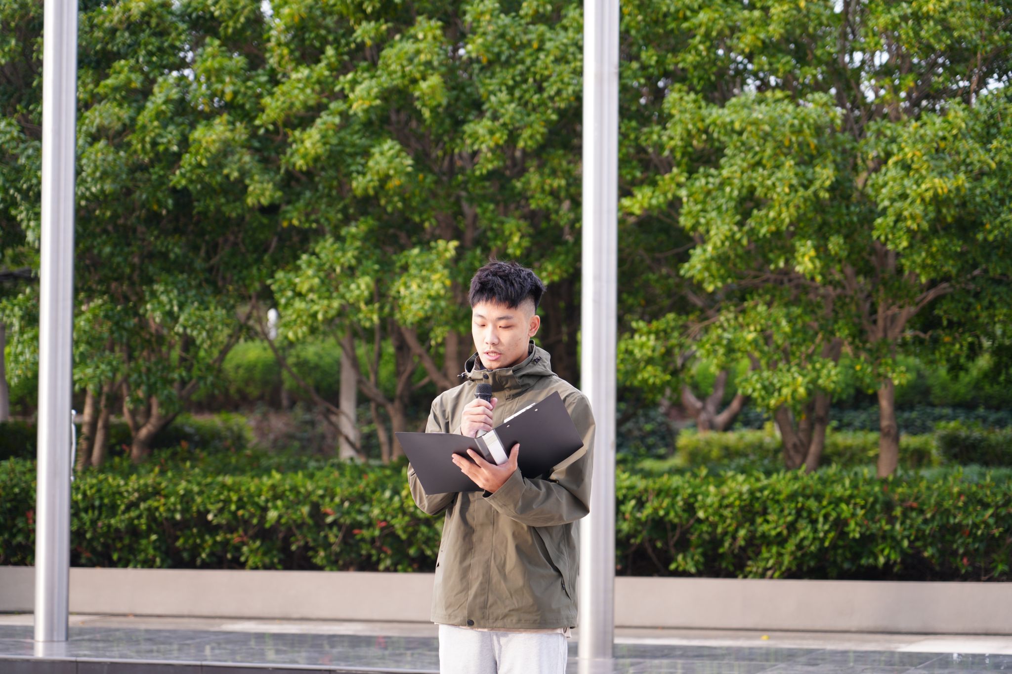 随后,钱伟长教育理念学生宣讲团的代表丁宁舒同学为大家带来题为《追寻钱老足迹,铸就科技梦想》的演讲,她以暑假期间参与学院组织的“钱老西南地区足迹探访”和“力学专业赴中国科技城绵阳实践”两场社会实践活动的感受引入,向大家介绍了始终伴随着钱老成长的爱国精神和科技报国的理念,呼吁上大人以钱老校长为榜样,继承和发扬钱老的爱国精神,以上大精神为笔,以科技创新为墨,共同绘就中华民族伟大复兴的壮美蓝图。