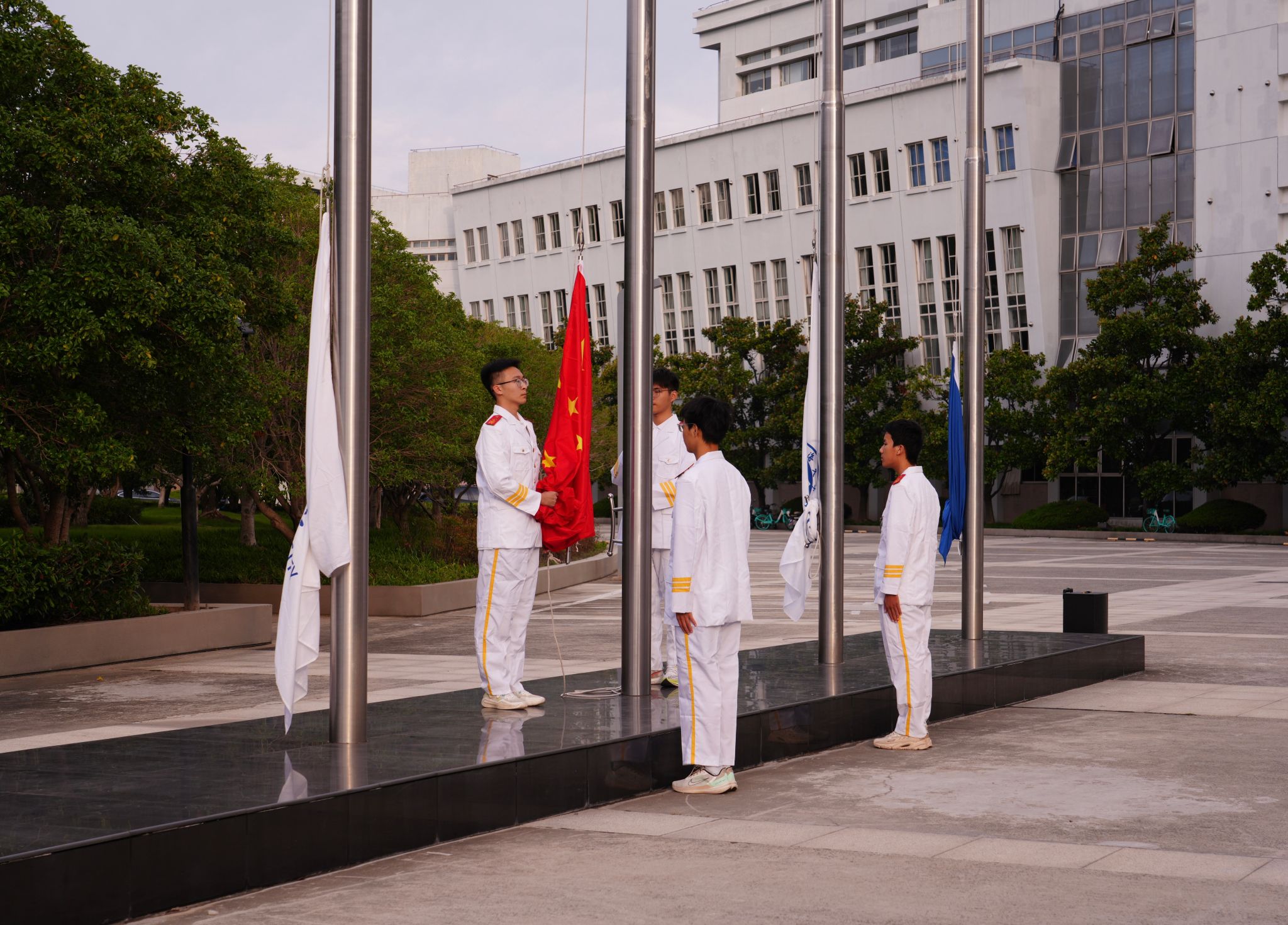 2024年10月9日7:00,金沙集团1862cc成色纪念钱伟长先生诞辰111周年暨金沙集团1862cc成色国旗卫士班主题升旗仪式在宝山校区行政楼前举行。校党委常委、副校长聂清,校党委宣传部副部长、精神文明建设委员会办公室主任何金伟,校学工办副主任韩晶,校团委副书记王杰,校党委宣传部主管颜丽娜,上大附中团委书记张亮超,钱伟长学院党委书记冯凌燕,党委副书记、院长周全,党委副书记、副院长沈青松,以及来自上大附中的师生代表和钱伟长学院师生党员、2024级全体新生等参加了活动。升旗仪式由金沙集团1862cc成色国旗卫士班承办,钱伟长学院2024级本科生张舒涵主持。