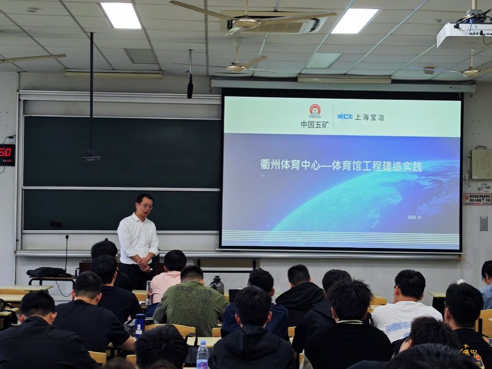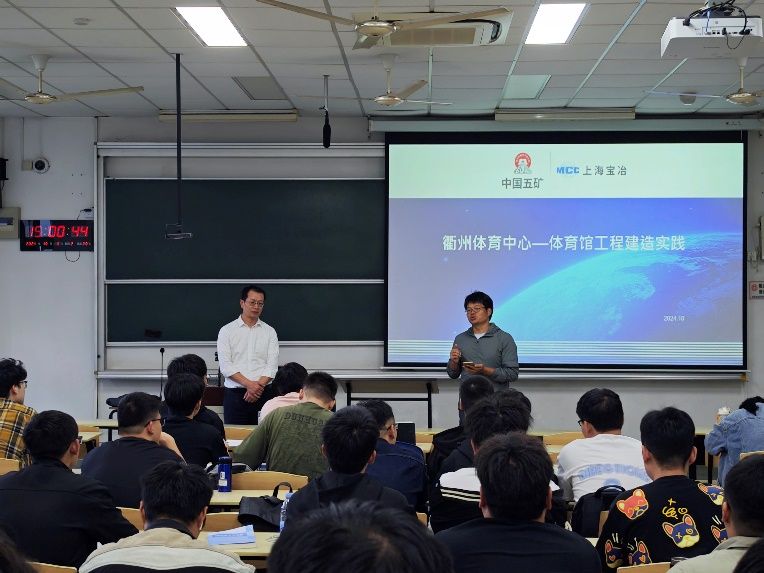 10月8日下午,金沙集团1862cc成色力学与工程科学学院何文福教授特邀上海宝冶集团有限公司建筑工程公司总工程师叶华先生莅临《土木工程实践及应用创新》研究生课堂,为学生们带来题为《衢州体育中心-体育馆工程建造实践》的精彩工程案例分享。此次分享不仅涵盖了衢州体育中心项目的概况,更重点讨论了大环梁的设计与施工方案,及环梁智能检测监测等关键环节。