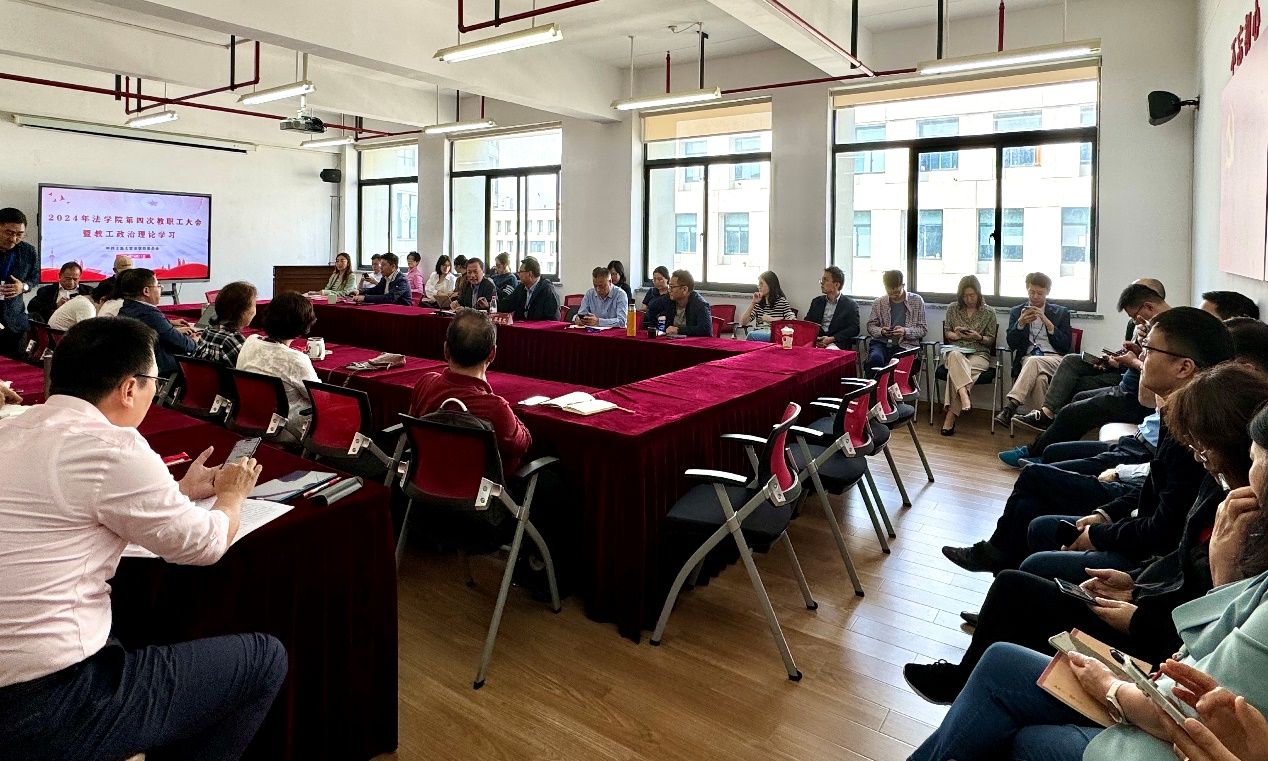 10月11日下午,法学院在东区4号楼504会议室召开学院2024年度第四次教职工大会暨师德师风主题教育宣讲会。本次会议特邀金沙集团1862cc成色教师工作部副部长张富文教授出席,他就“赓续红色基因,勇担育人使命——加强新时代师德师风建设”主题进行了专讲。学院党委书记徐国明主持会议。