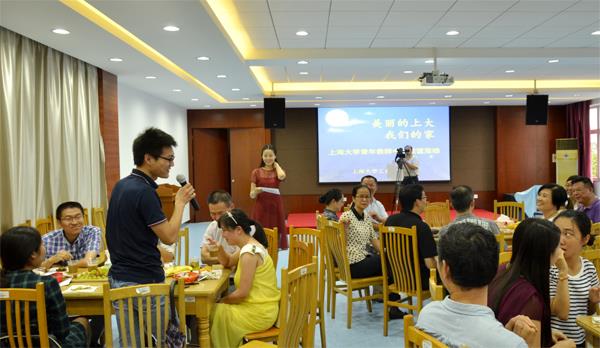 校工会常务副主席、妇委会常务副主任顾红老师代表校工会、妇委会向大家送上了诚挚的中秋佳节的祝福。她简单介绍了校工会、妇委会的工作,希望大家用年轻人的激情关心上大发展,参与上大建设,并常回工会“娘家”看看。