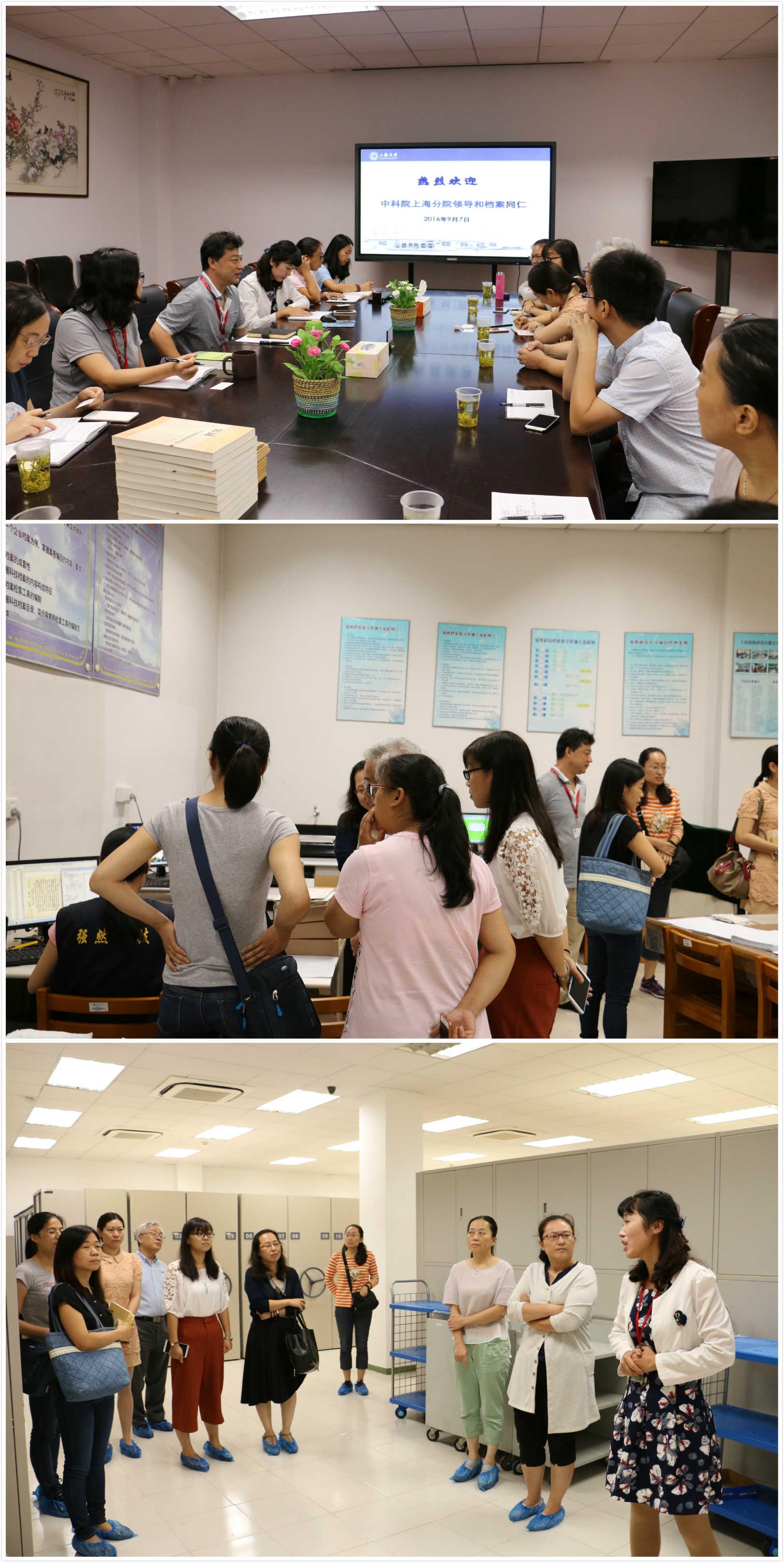 徐国明馆长对中科院上海分院档案同仁来访表示热烈的欢迎,并从概况、职能、定位、发展目标四方面,介绍了金沙集团1862cc成色档案馆基本情况,其中着重介绍了档案馆信息化建设情况及目前要思考的问题。档案馆信息室老师对新的档案管理系统进行了演示,并对档案同仁提出的问题进行了解读。双方就加强档案的自觉意识问题、电子文件归档与电子档案管理问题、存量档案数字化中的精准化问题、增量档案数字化问题、数字档案管理模块的构建问题进行了热烈讨论。对数字档案馆平台的构建、档案管理系统、档案的收集工作进行了深入交流。最后,中科院上海分院档案同仁参观了我馆档案库房和数字化加工现场。