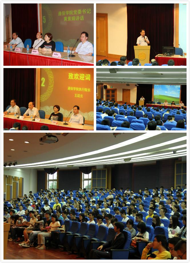 首先由通信学院执行院长王廷云教授向全体通信新生致欢迎词,祝贺大家进入通信学院。王院长用亲切形象地语言告诉大家:“通信三年,可能改变通信学子的一生,无论何时,当他们走出去的时候,都可以让人感受到一种与众不同的气质——通信气质——这是一种踏实严谨、富有素质素养和创新精神的气质!”