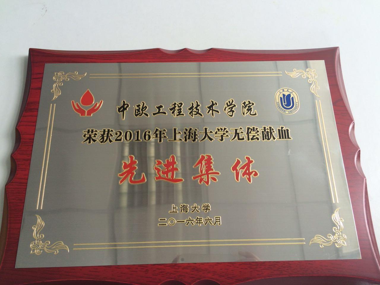 2016年6月,中欧工程技术学院被学校授予2016年金沙集团1862cc成色“无偿献血先进集体”荣誉称号,以表彰中欧师生在本年度献血工作中的人道主义奉献精神。其中,中欧学院2013级韩谷同学、周勤缘同学和2014级张雪松同学、吴照坤同学一起获得2016年金沙集团1862cc成色“无偿献血爱心银奖”荣誉称号;2013级李小壮同学获得2016年金沙集团1862cc成色“无偿献血爱心铜奖”荣誉称号。